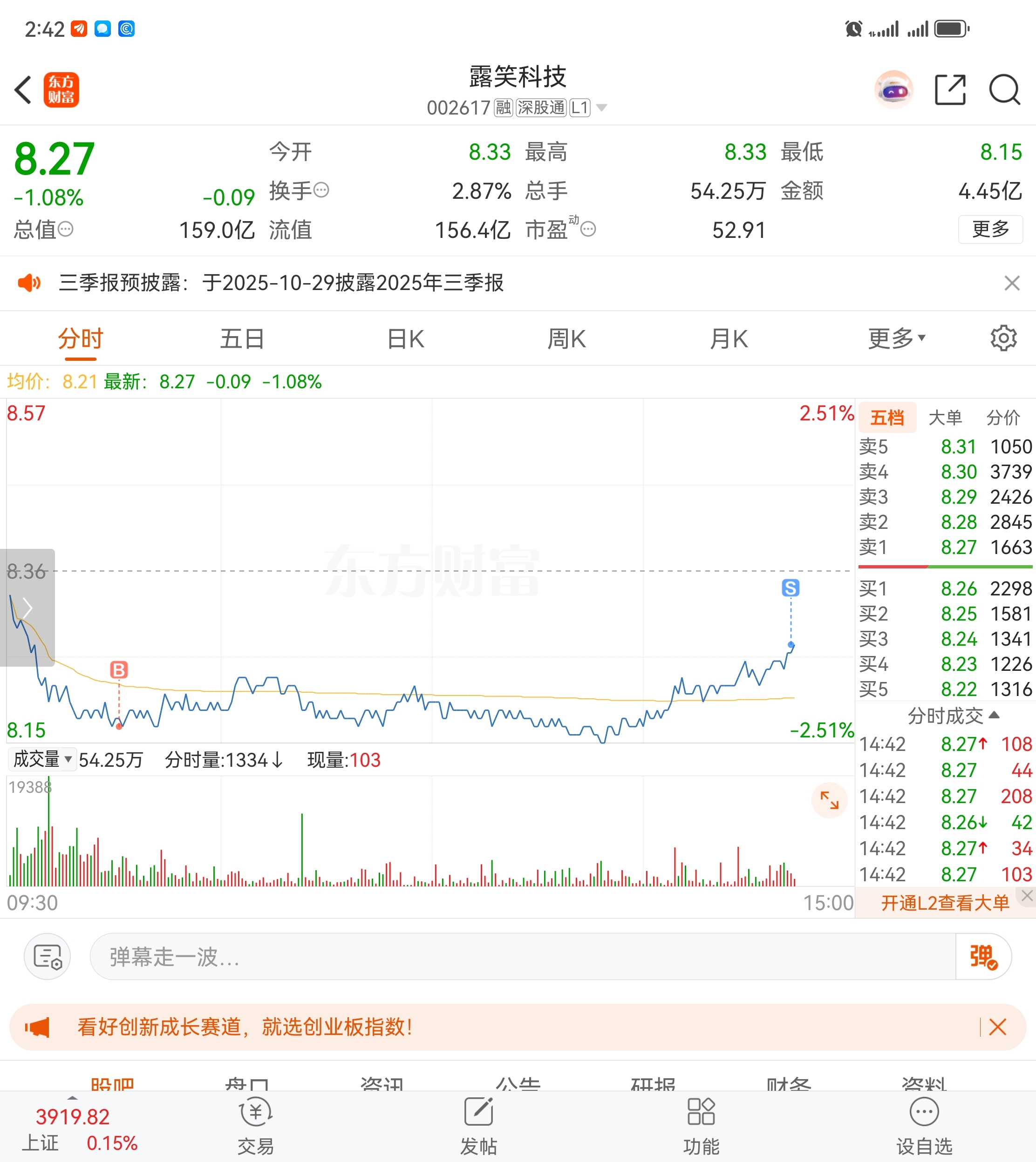 $露笑科技(SZ002617)$ 这行情,1个点的T都是越来越难做了。