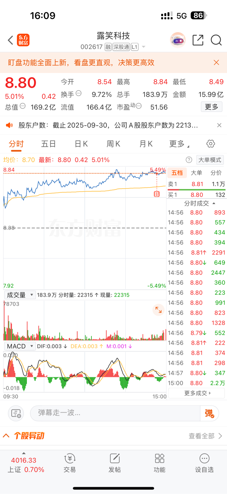 $露笑科技(SZ002617)$ 盘尾接的明天怎么看
