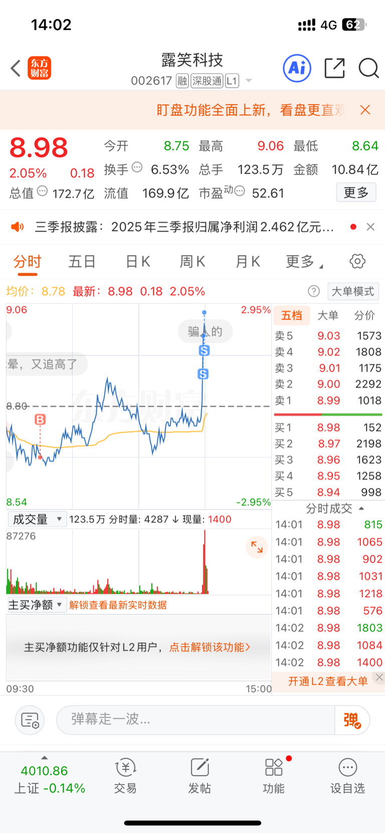 $露笑科技(SZ002617)$ 先走了 谢谢