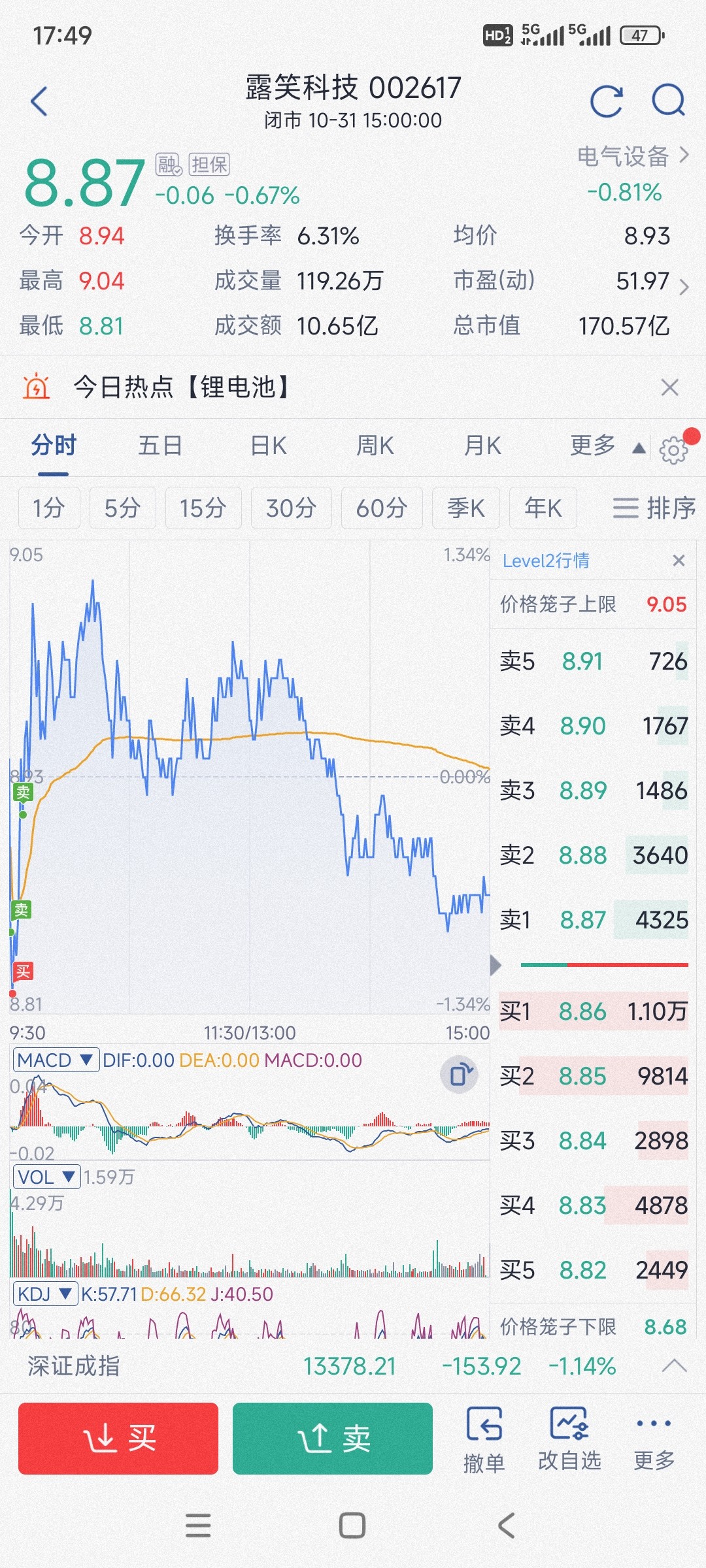 $露笑科技(SZ002617)$ 卖了一半仓位,等5日线附近在来接回?