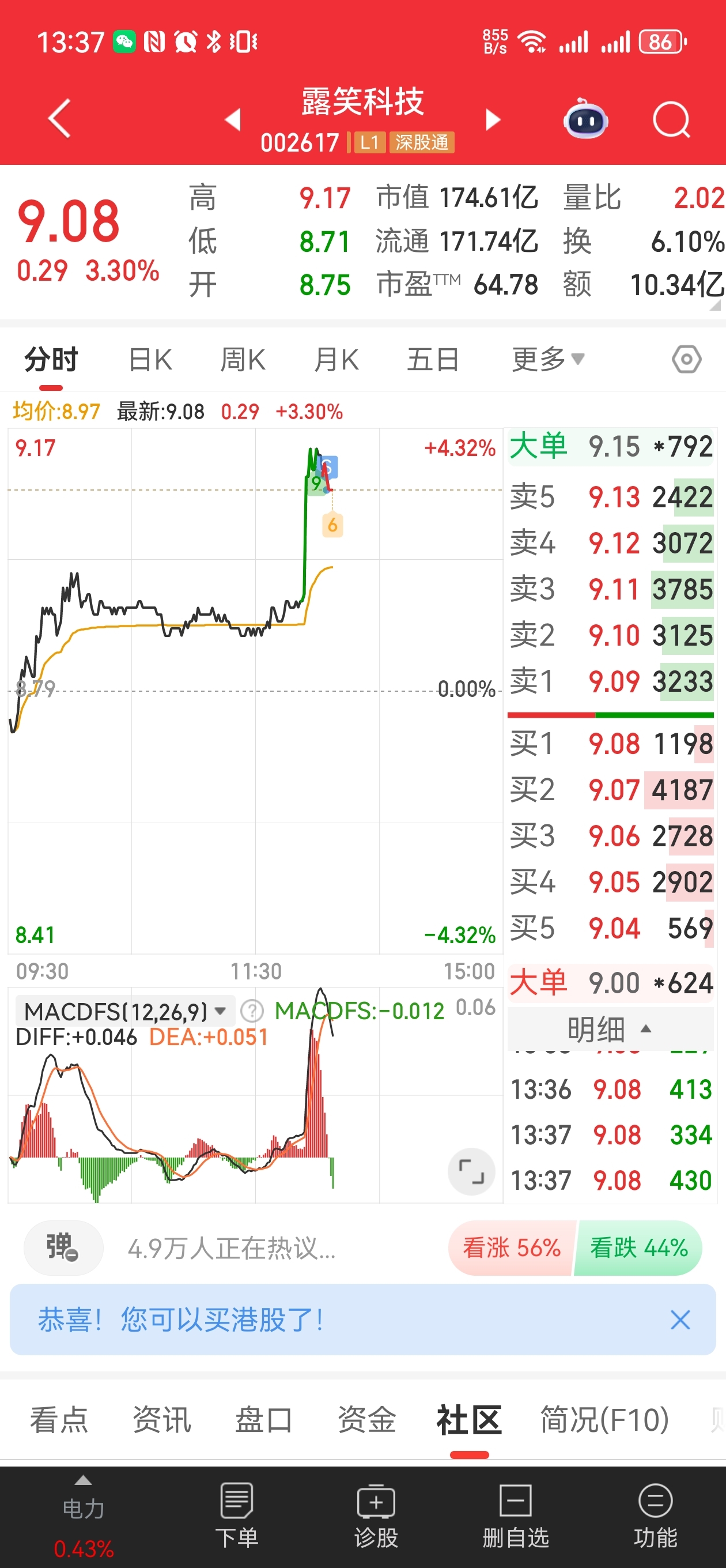 $露笑科技(SZ002617)$ 前几天加的t一些。