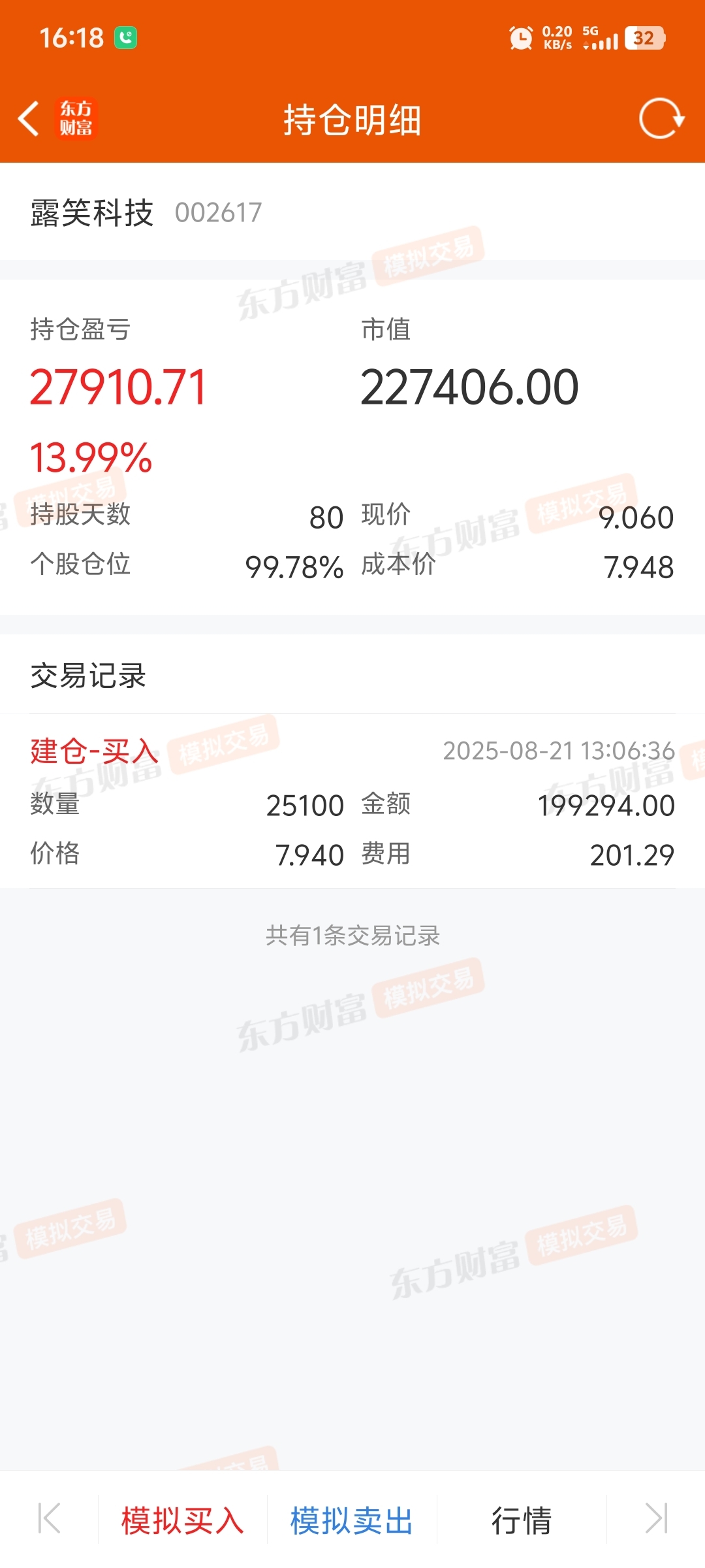 $露笑科技(SZ002617)$ 没钱只能买买模拟,希望来个翻倍八月锁仓到现在,T都没有做
