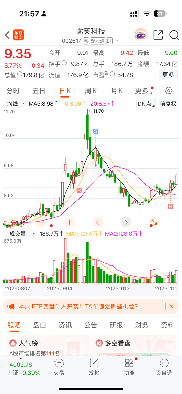 $露笑科技(SZ002617)$ 露笑我又回来了,能破前期高点吗?