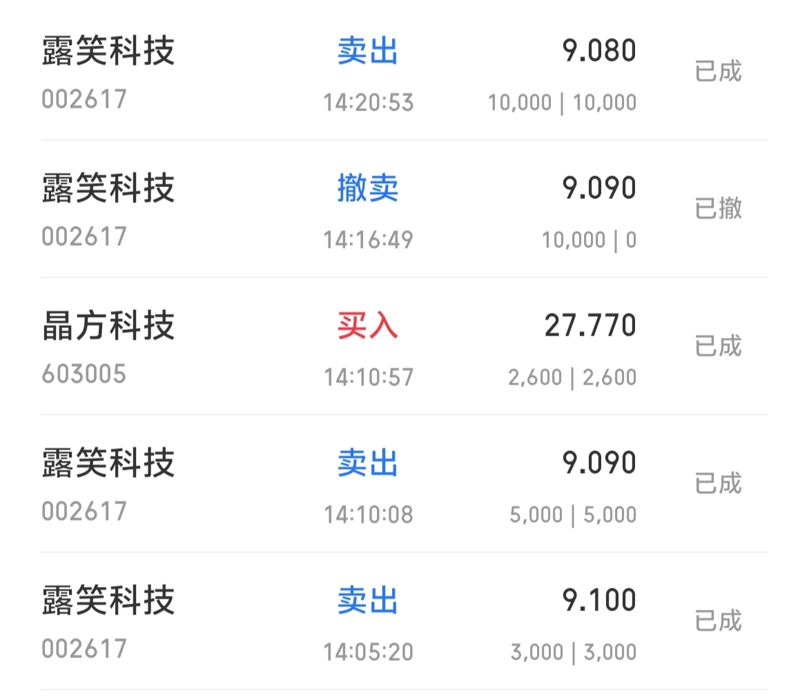 $露笑科技(SZ002617)$ 感觉大盘要下行,安全第一,清仓楚天和露笑。后悔加仓晶方
