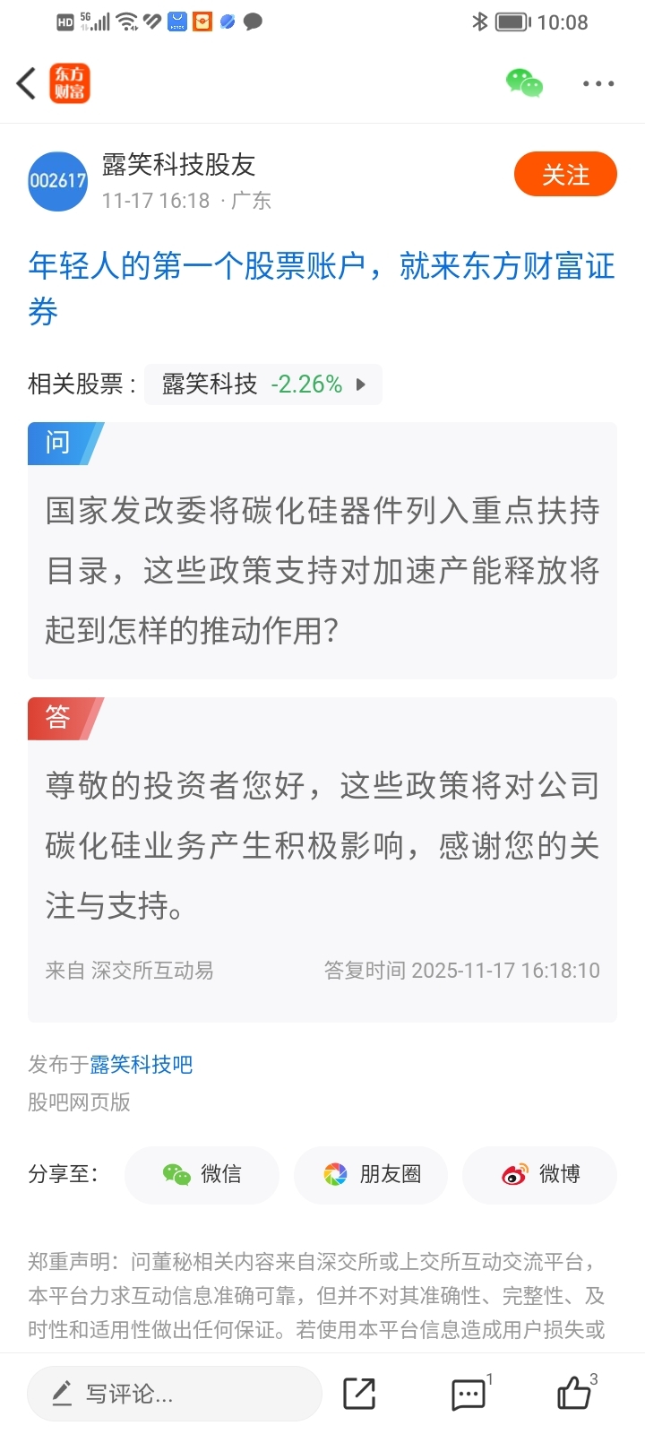 温馨提示: 1.根据《证券法》规定,禁止编造、传播虚假信息或者误导性信息,扰乱证券市场;2.用户在本社区发表的所有资料、言论等仅代表个人观点,与本网站立场无关,不对您构成任何投资建议。用户应基于自己的独立判断,自行决定证券投资并承担相应风险。《东方财富社区管理规定》