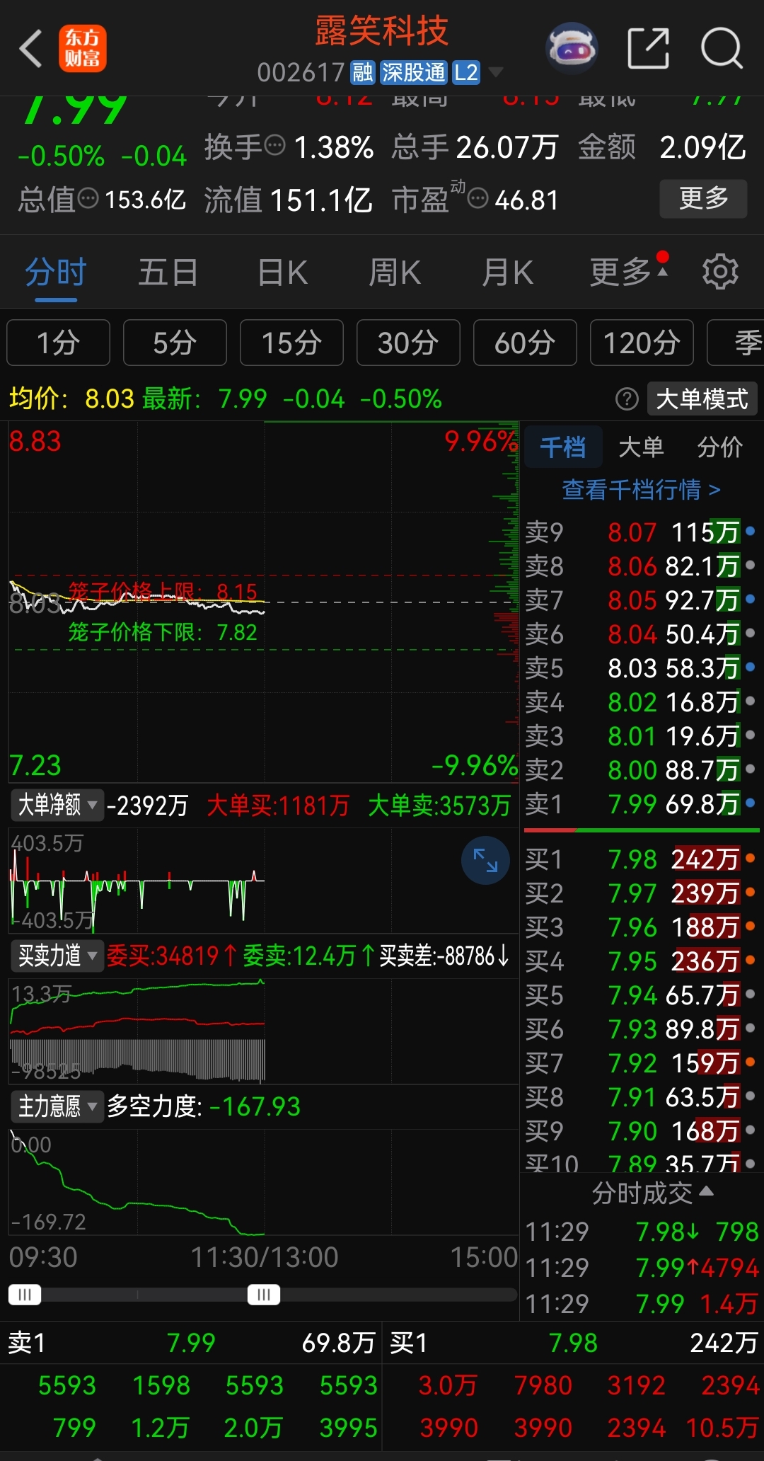 $露笑科技(SZ002617)$ 抛压不大。为何总在跌?
