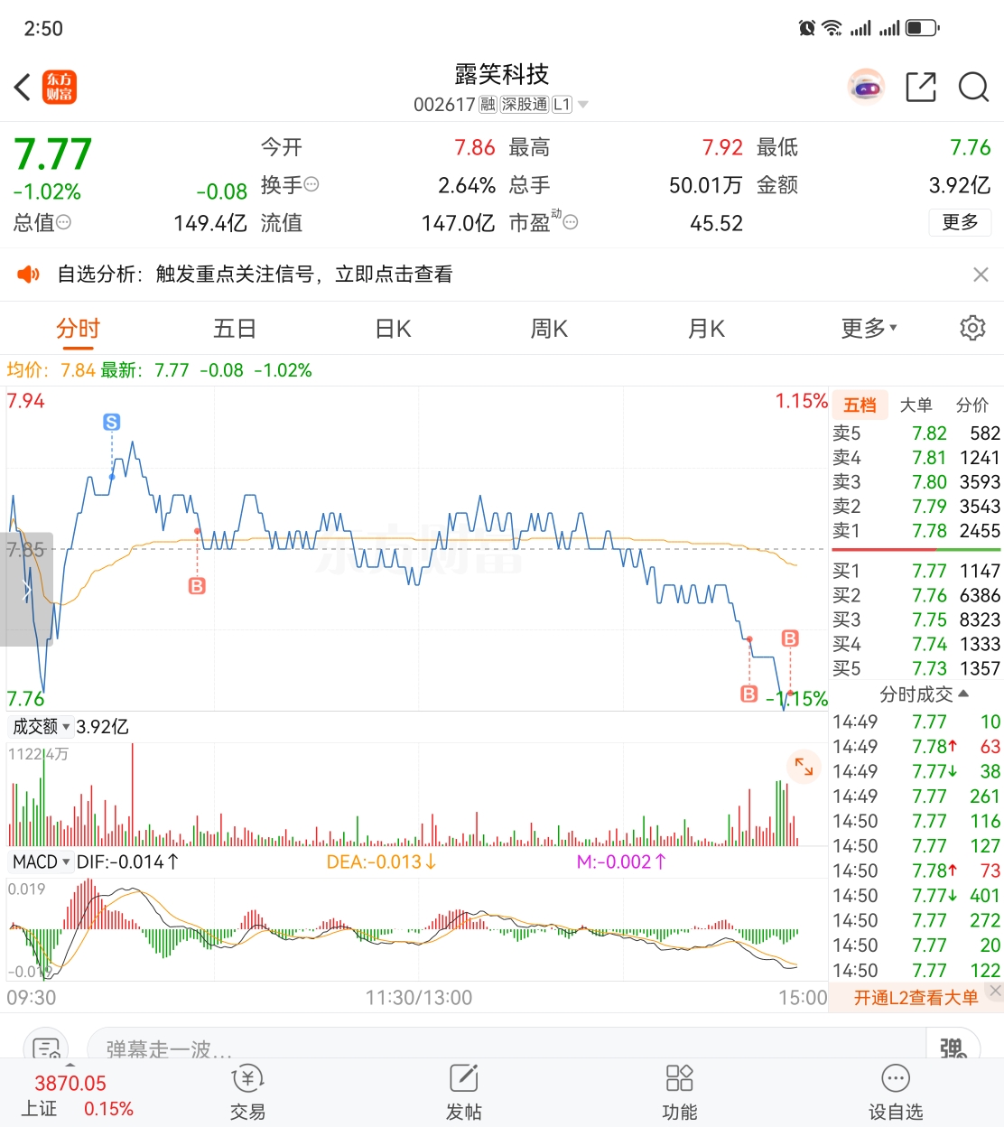 $露笑科技(SZ002617)$ 我这个250,在7.77买入,计划9.99卖出。