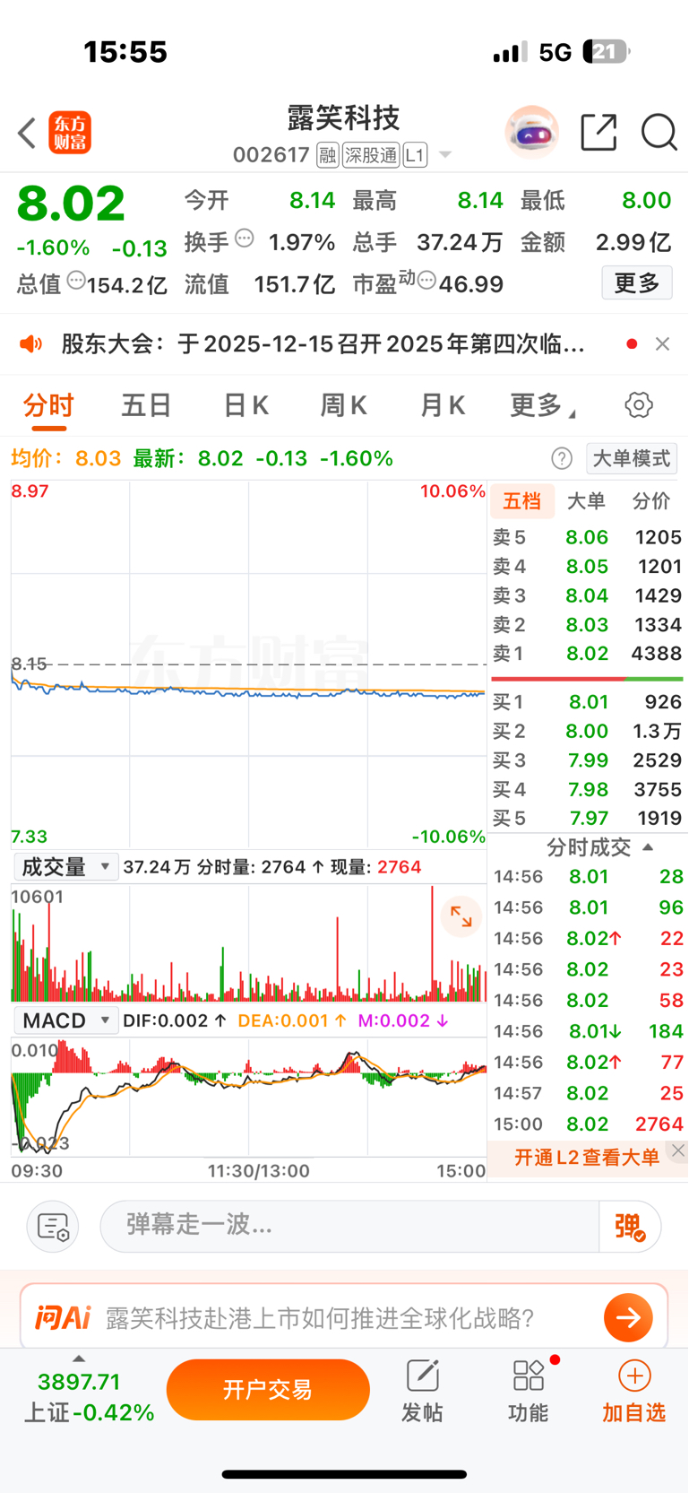 $露笑科技(SZ002617)$ 请问成交量里有几个这么大的买入单为啥价格拉不上去呀?啥意思