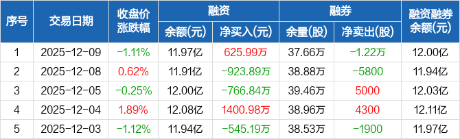 露笑科技:融资净买入625.99万元,融资余额11.97亿元(12-09)