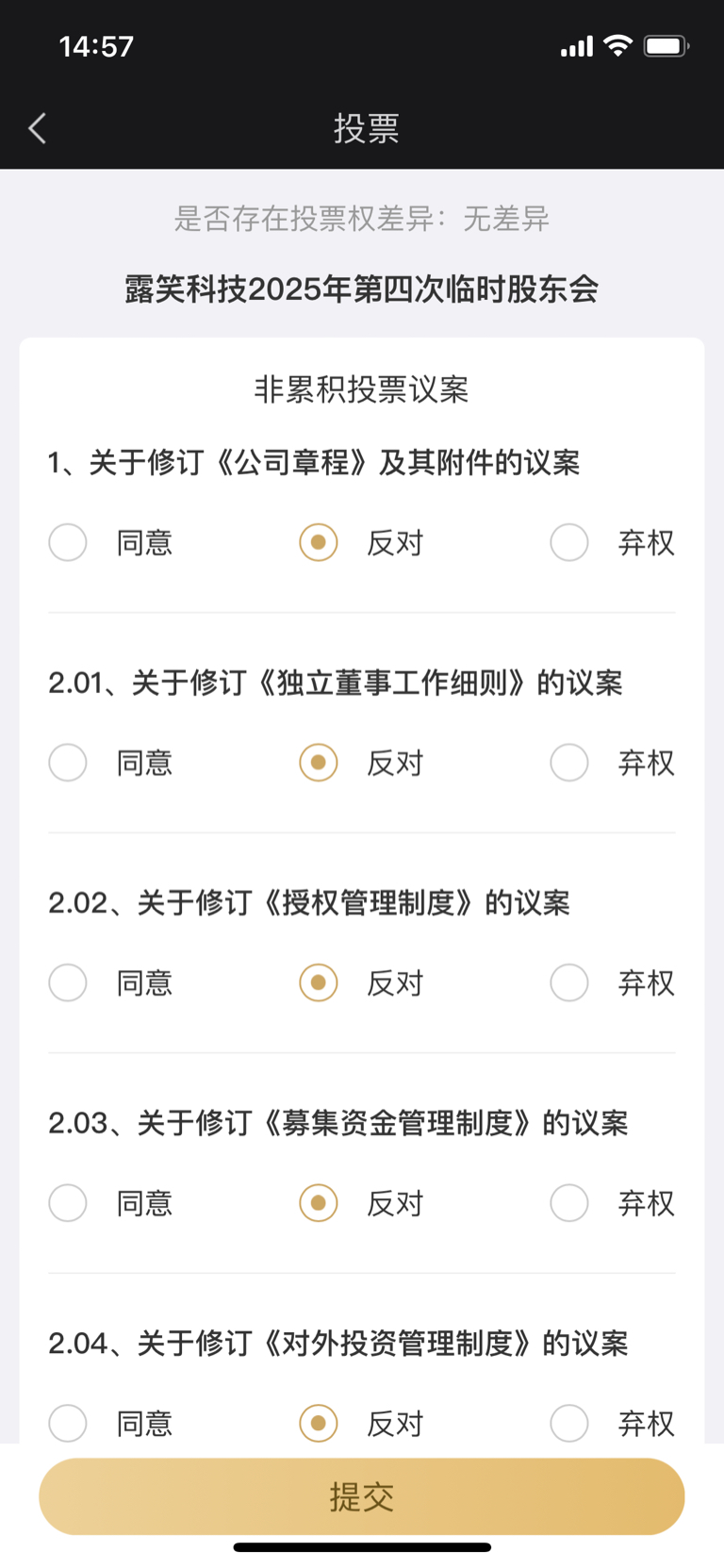 $露笑科技(SZ002617)$ 全反对,虽然没啥用,今天投票,大家用脚投,在app那里