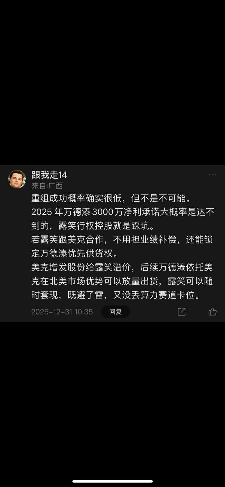 郑重声明:用户在财富号/股吧/博客等社区发表的所有信息(包括但不限于文字、视频、音频、数据及图表)仅代表个人观点,与本网站立场无关,不对您构成任何投资建议,据此操作风险自担。请勿相信代客理财、免费荐股和炒股培训等宣传内容,远离非法证券活动。请勿添加发言用户的手机号码、公众号、微博、微信及QQ等信息,谨防上当受骗!