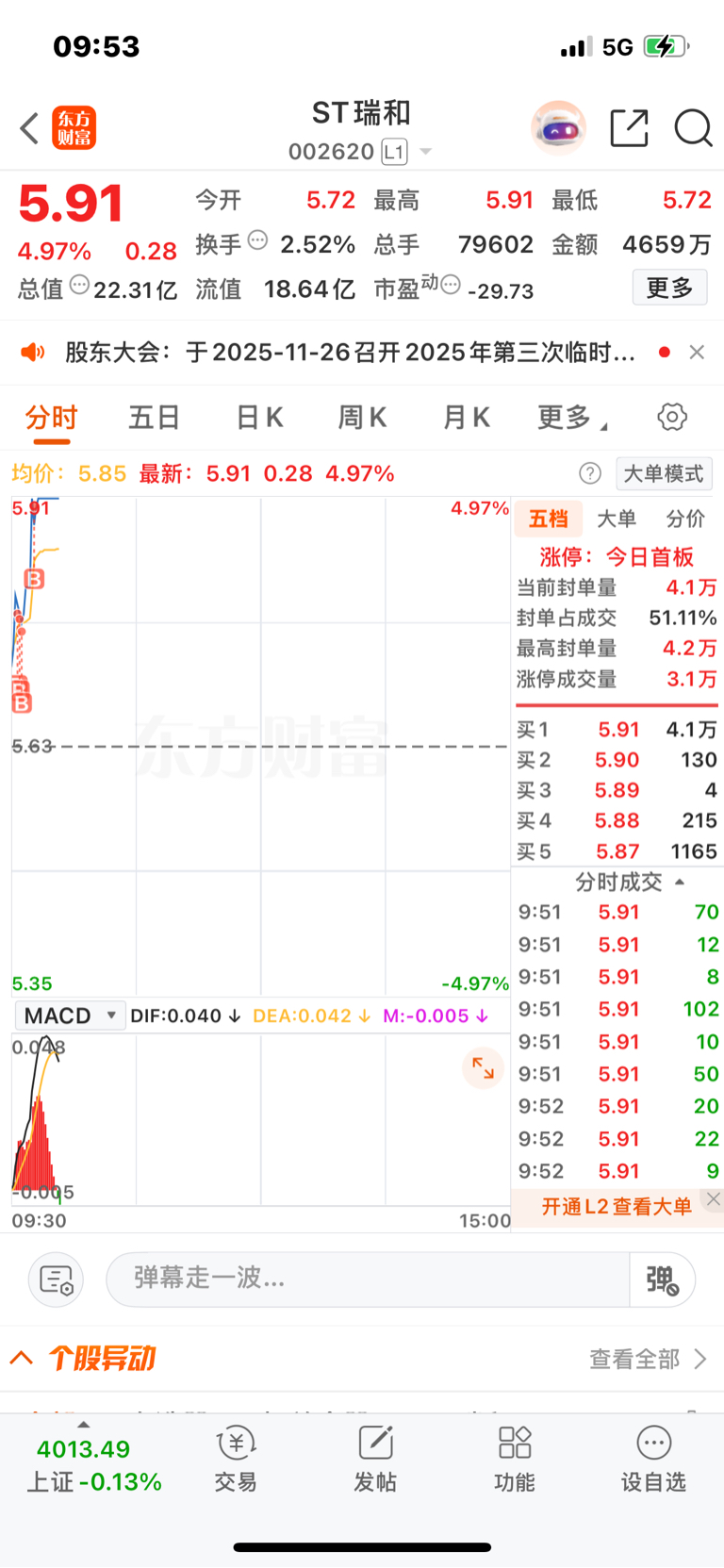 $ST瑞和(SZ002620)$ 龙头已经加不进去、这里小仓位上一点