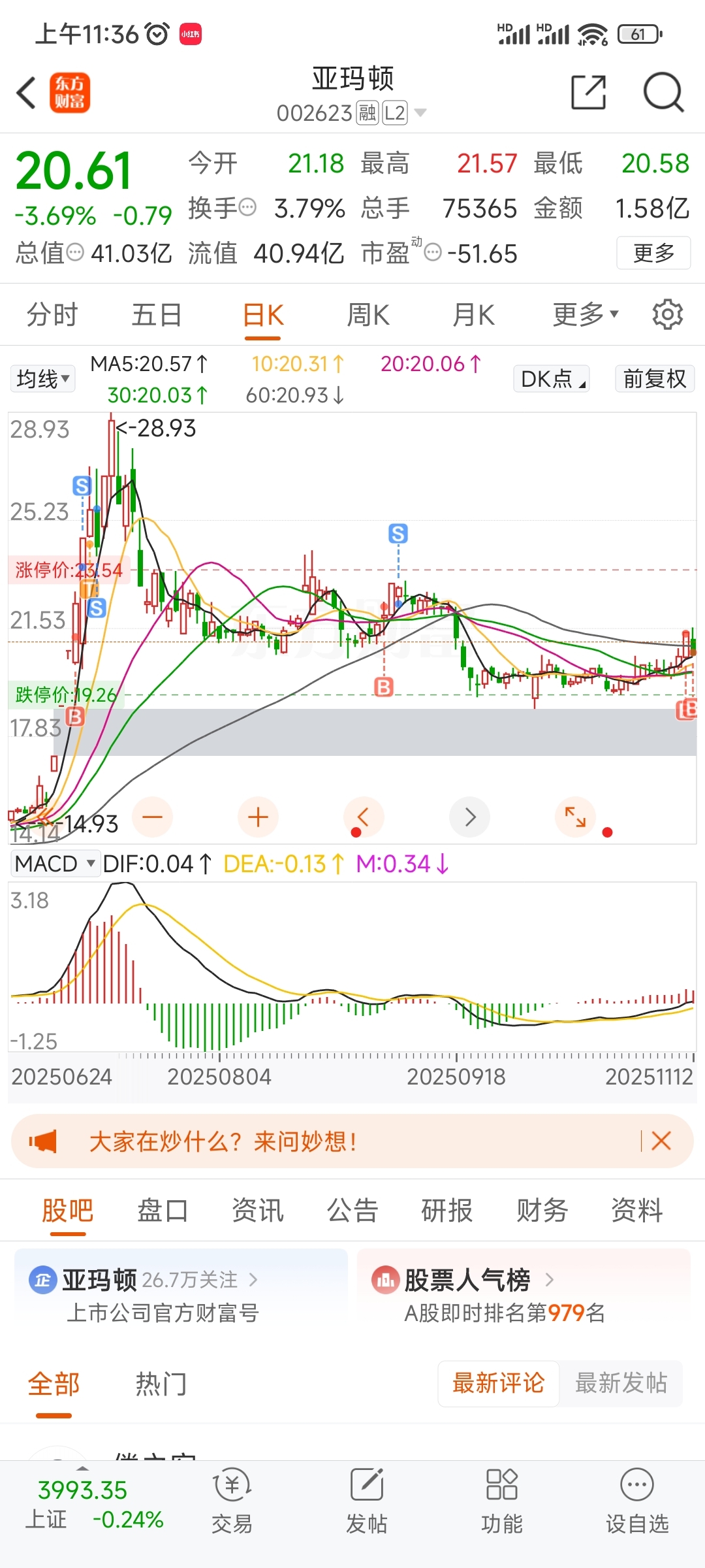 $亚玛顿(SZ002623)$ 试试看,周线有突破的迹象,不行就割