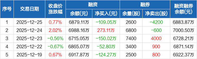 亚玛顿:融资净偿还109.05万元,融资余额6879.11万元(12-25)