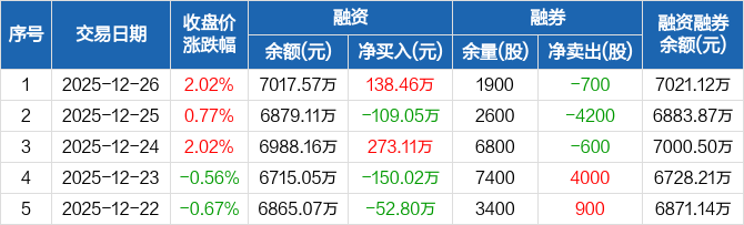亚玛顿:融资净买入138.46万元,融资余额7017.57万元(12-26)