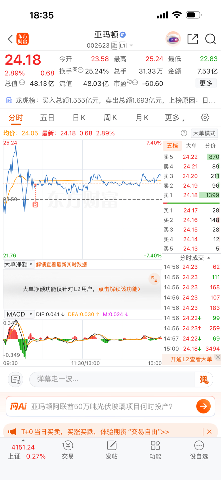 $亚玛顿(SZ002623)$ 毛驴来了,希望主力给小爷一个面子,明天直接一字板