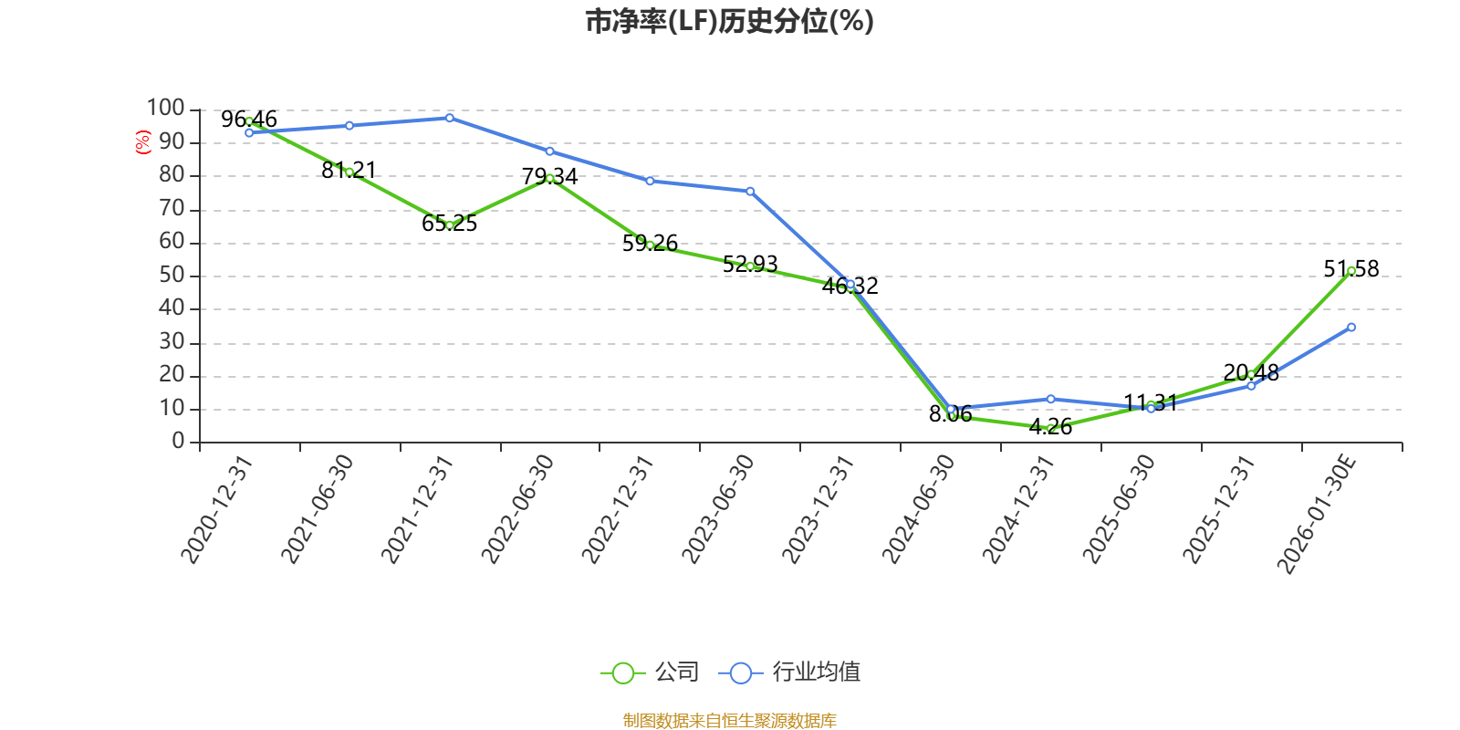 市盈率、市净率为负时,不显示当期分位数,会导致折线图中断。