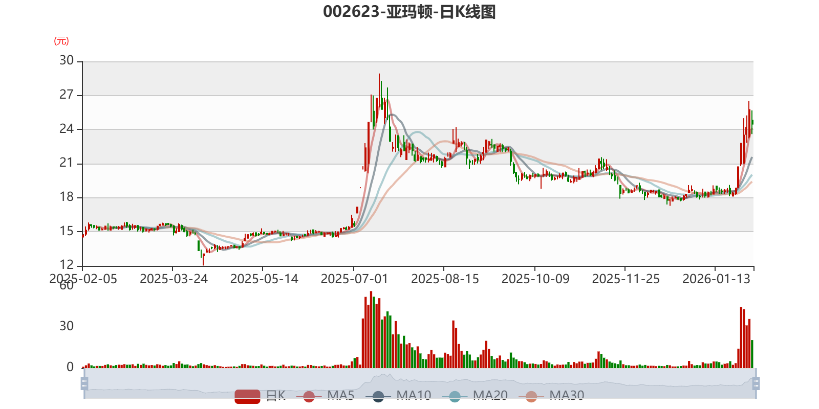 中证智能财讯亚玛顿(002623)1月30日晚间披露2025年度业绩预告,预计2025年归母净利润亏损1亿元至1.2亿元,上年同期亏损1.27亿元;扣非净利润亏损1.36亿元至1.56亿元,上年同期亏损1.53亿元;基本每股收益-0.5元/股至-0.61元/股。以最新收盘价计算,市净率(LF)约1.72倍,市销率(TTM)约2.41倍。
