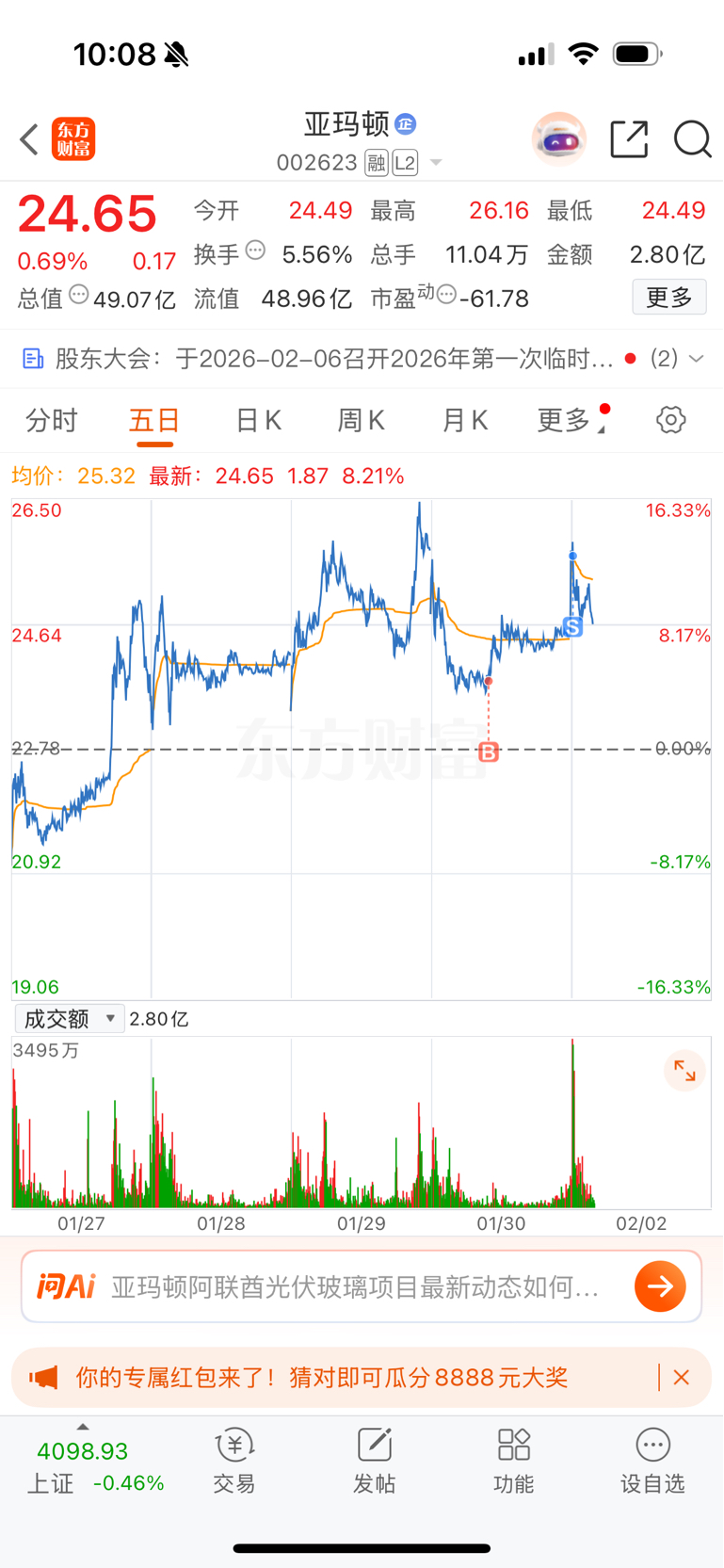 $亚玛顿(SZ002623)$ 坚定不移长期看好,短线操作