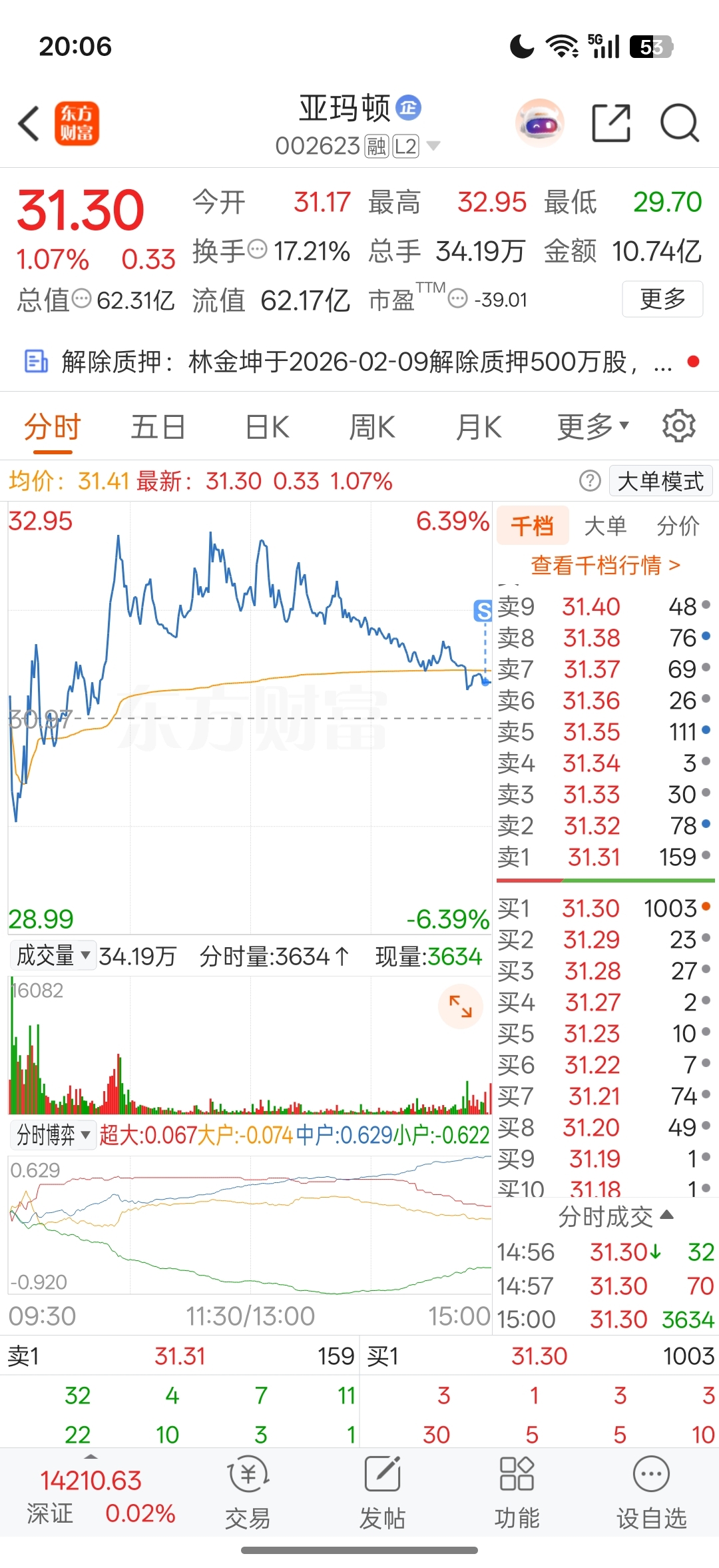 $亚玛顿(SZ002623)$ 盘中那么多机会没走
