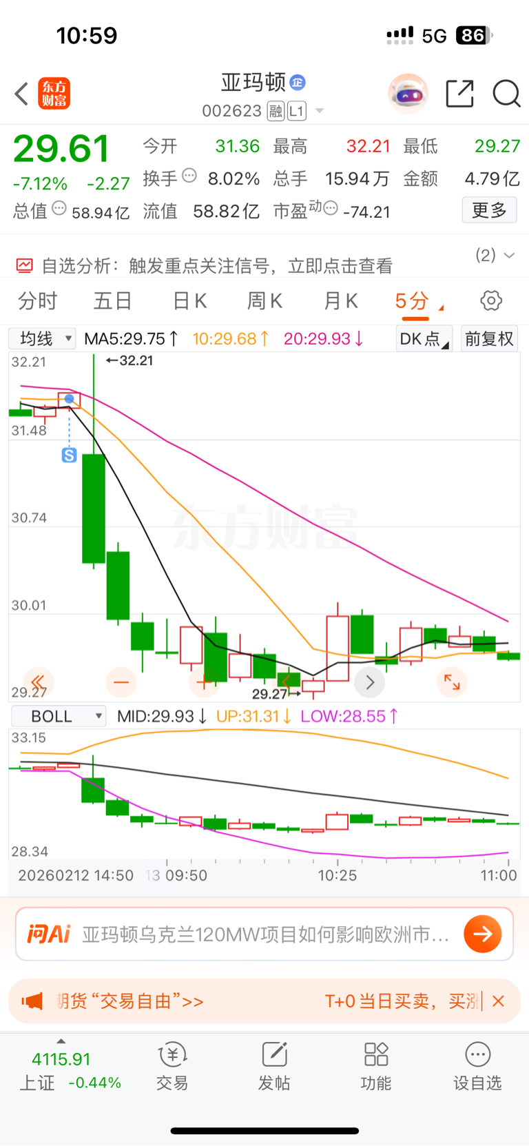 $亚玛顿(SZ002623)$ 40个点走了,年后回来