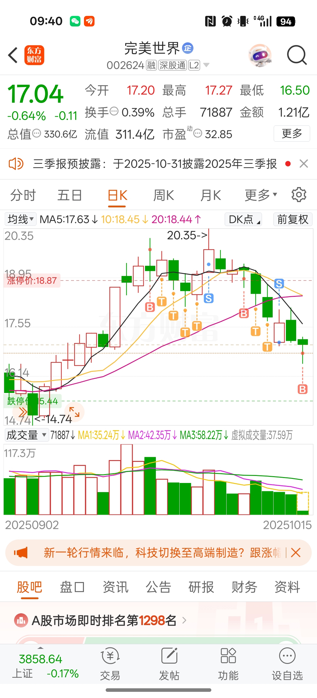 $完美世界(SZ002624)$ 我20的本能回本吗?