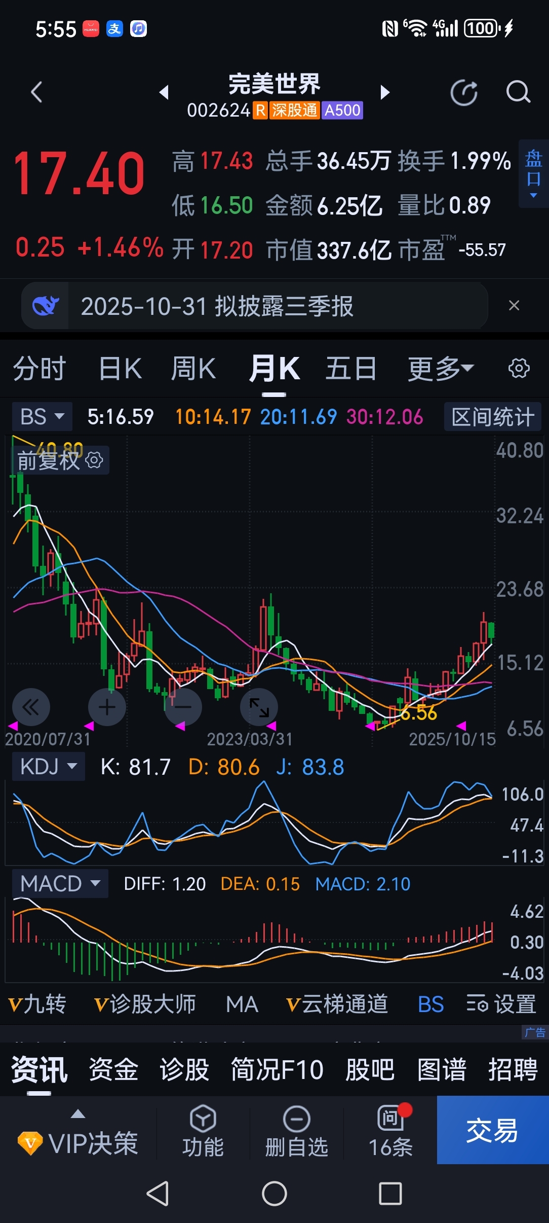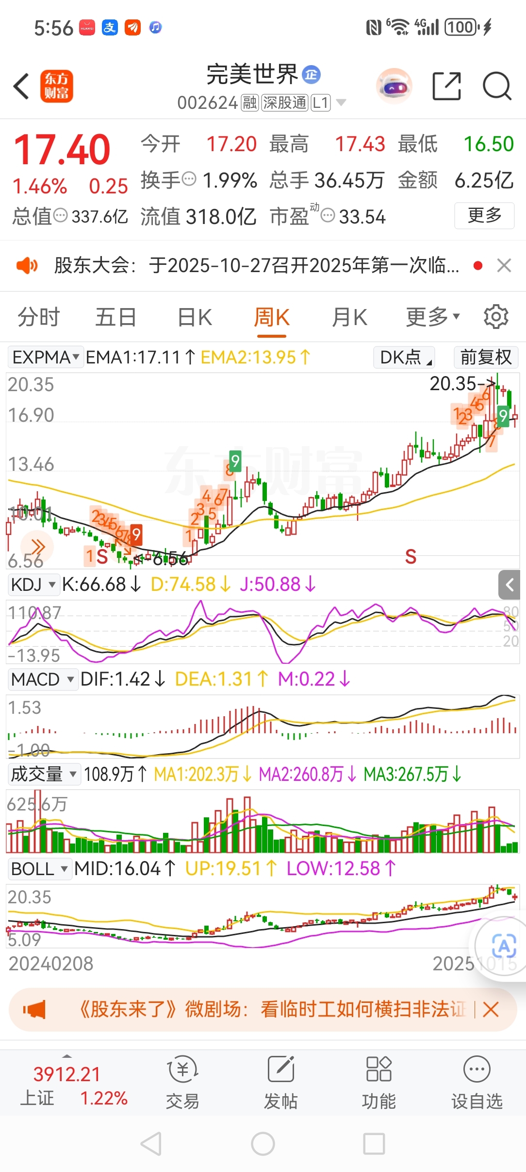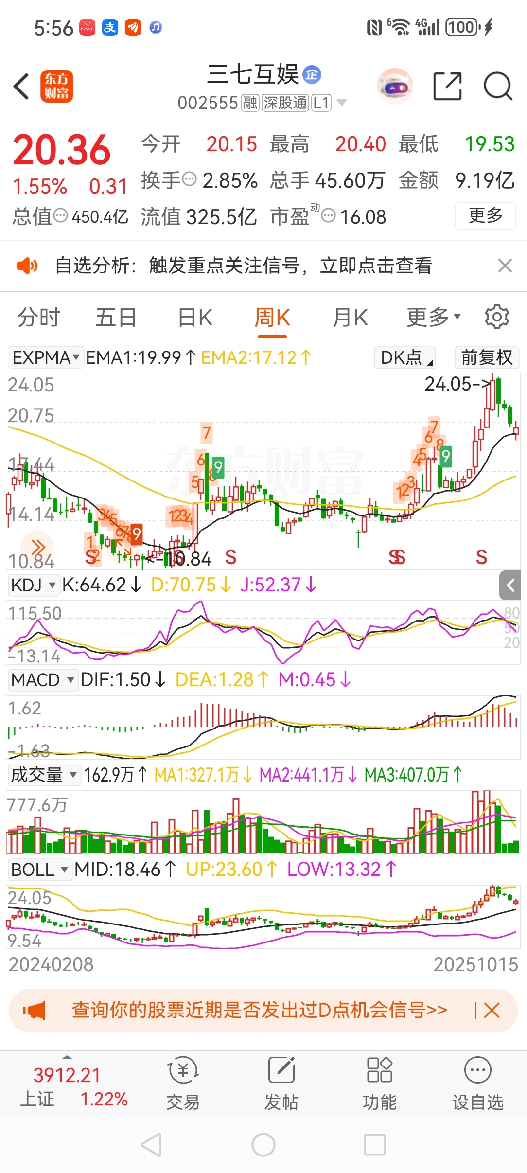 顶是跌出来的,那么现在买入机会如何?以下月线图周线图,通过历次的顶部结构分析,完美世界会有一次绝地反弹,而三七互娱是闷杀,不给买入者逃离机会