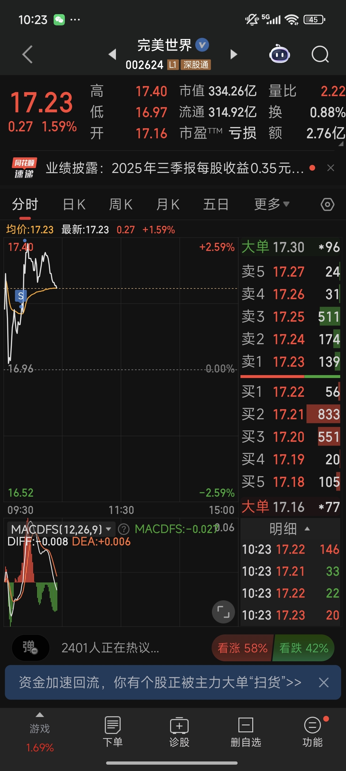 $完美世界(SZ002624)$ 昨天16.9接的,今天作为T狗又幸福了