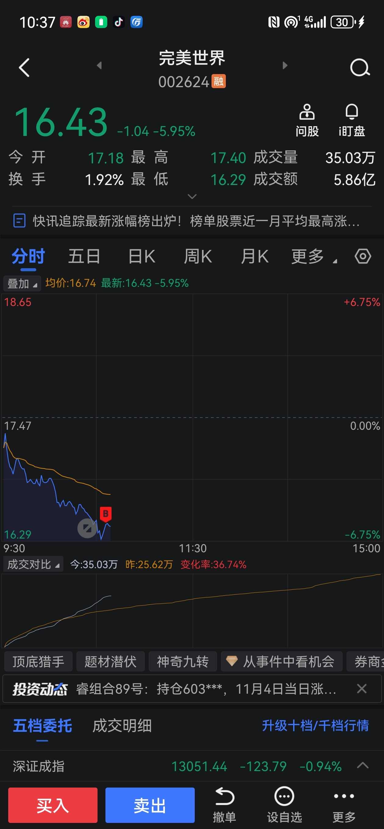 $完美世界(SZ002624)$ 补仓也被套?