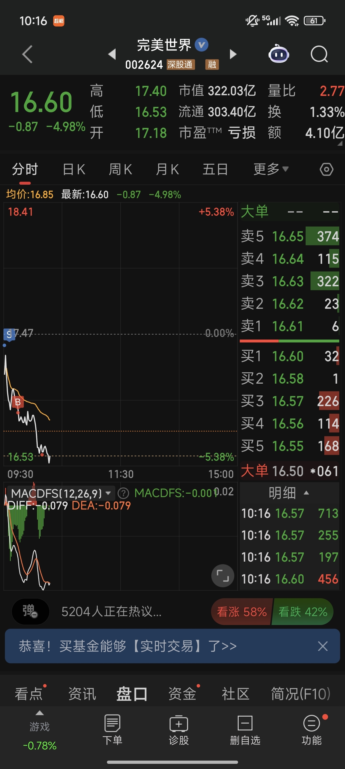 $完美世界(SZ002624)$ 可惜了,早盘出的好,就是买早了