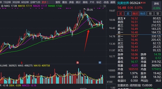 $完美世界(SZ002624)$ 昨日是4月以来第一次正式跌破ma60,应予以重视,在没有回到均线之上前,暂时退出仓位,谨防下跌风险。待逐渐回到ma60后再补回仓位。这样做的好处是不会犯原则性错误(不会被大幅下跌套牢)。