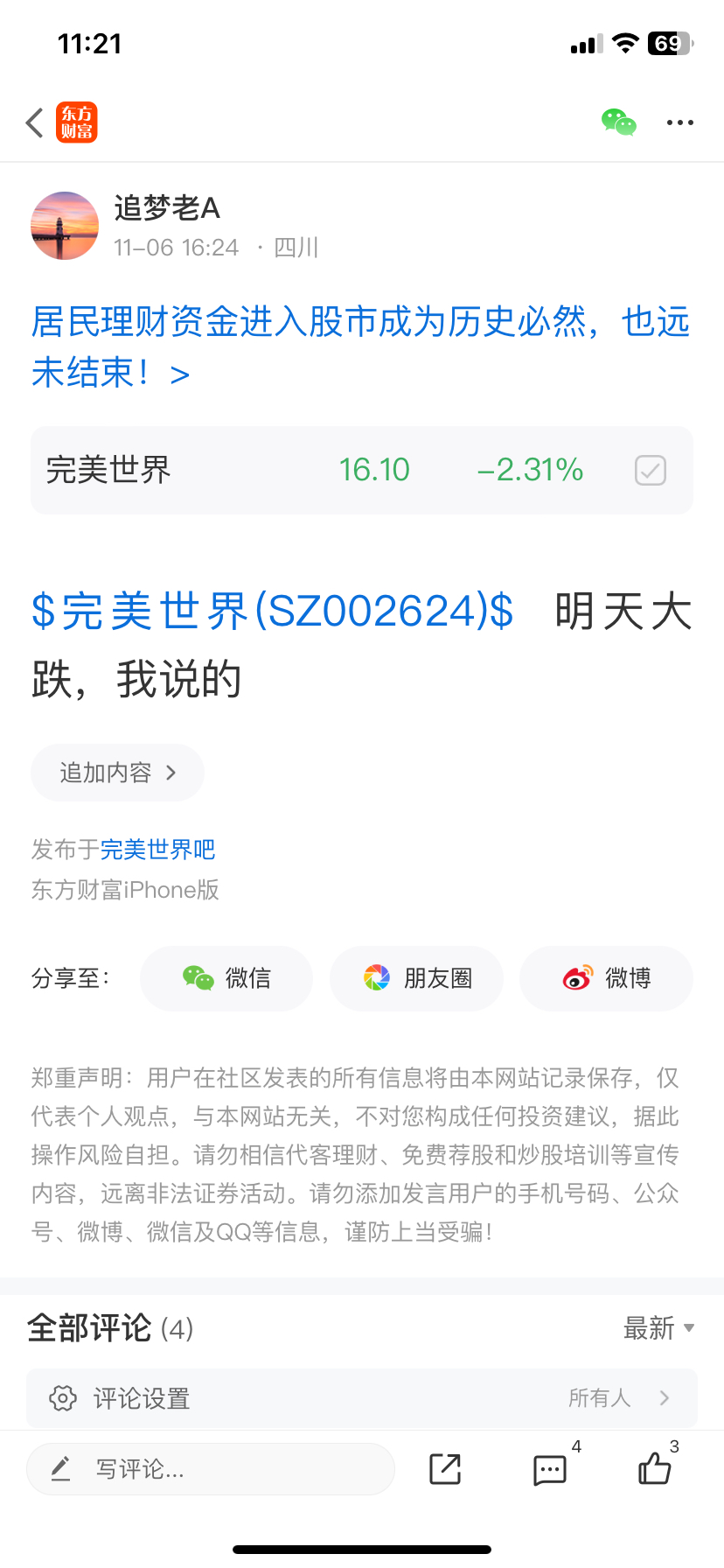 温馨提示: 1.根据《证券法》规定,禁止编造、传播虚假信息或者误导性信息,扰乱证券市场;2.用户在本社区发表的所有资料、言论等仅代表个人观点,与本网站立场无关,不对您构成任何投资建议。用户应基于自己的独立判断,自行决定证券投资并承担相应风险。《东方财富社区管理规定》