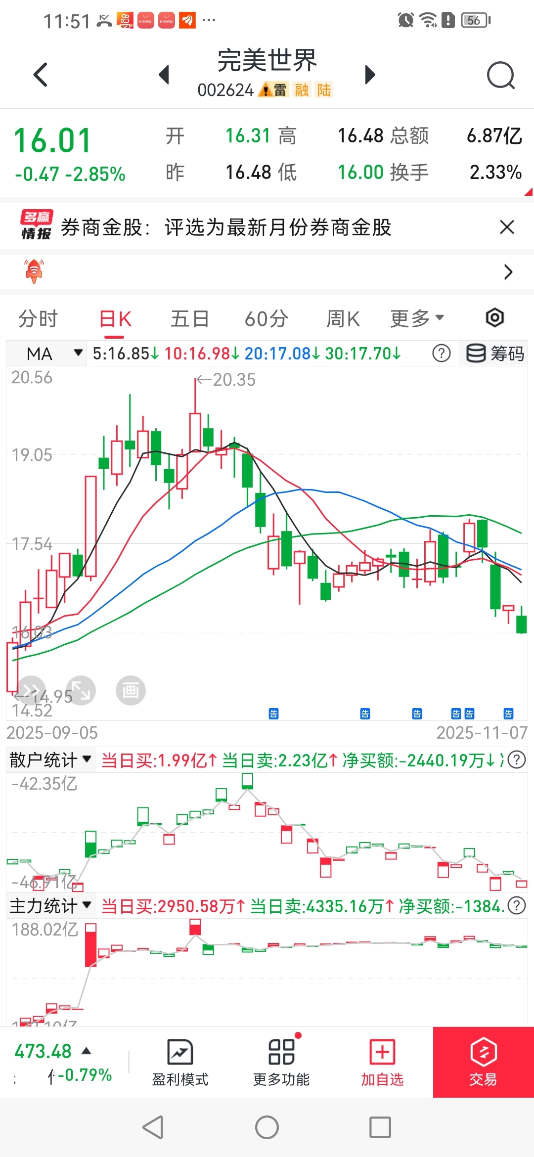 $完美世界(SZ002624)$ 经传多赢手机版数据短线王123元年费,关键是跟买跟卖专用量化的机构,不会看盘,他们在跟能看见机构名称的软件!!!找到它。他有经传多赢软件对他没有用,他的思维在跟领导性量化,注定不会涨。散户T+1根本不可能突破的,散户T+0的话,这个量化才能能二次加仓吃货,不然就是拉不高。不可能突破的,控盘开盘价可以是大单,也可以是专用量化机构和量化庄,庄程序请看以往评论区!