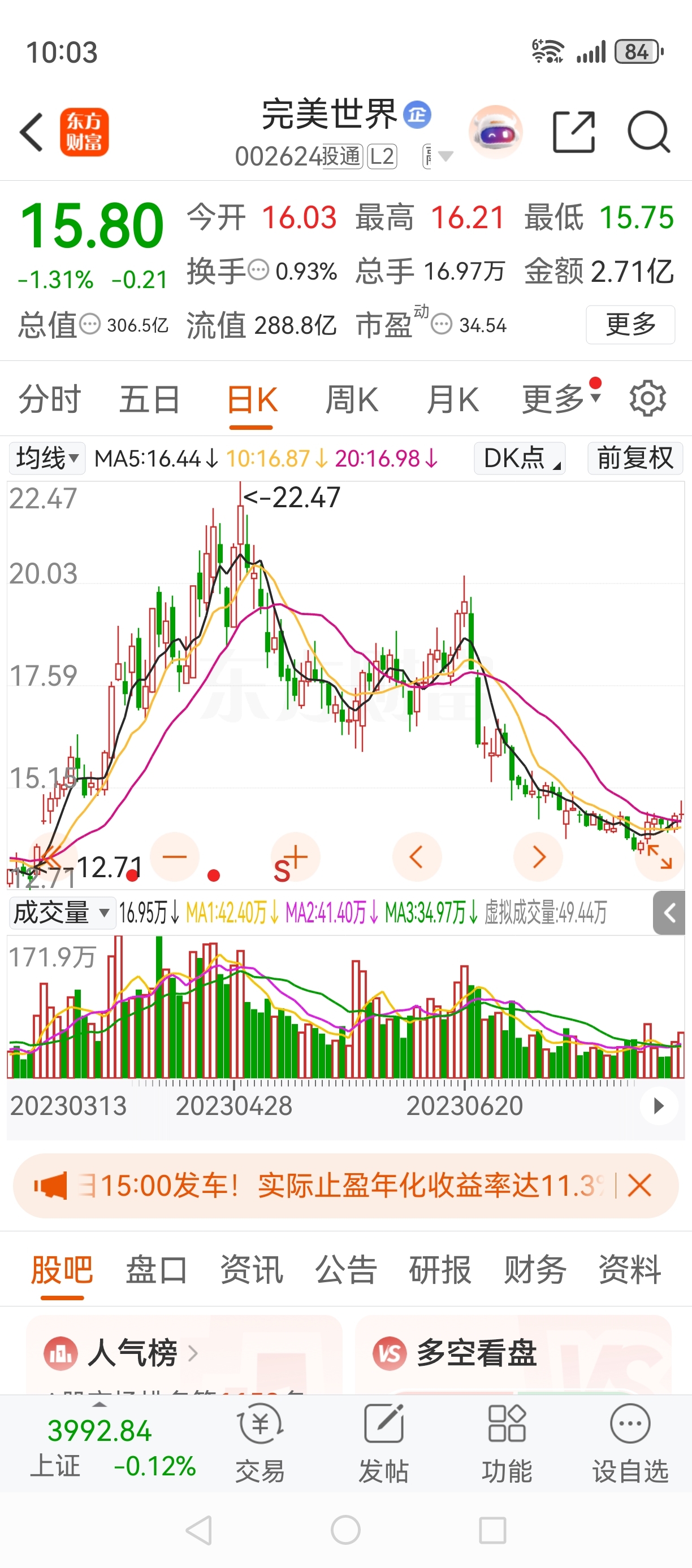 $完美世界(SZ002624)$ 和这个图形很像,估计要跌破十位数了