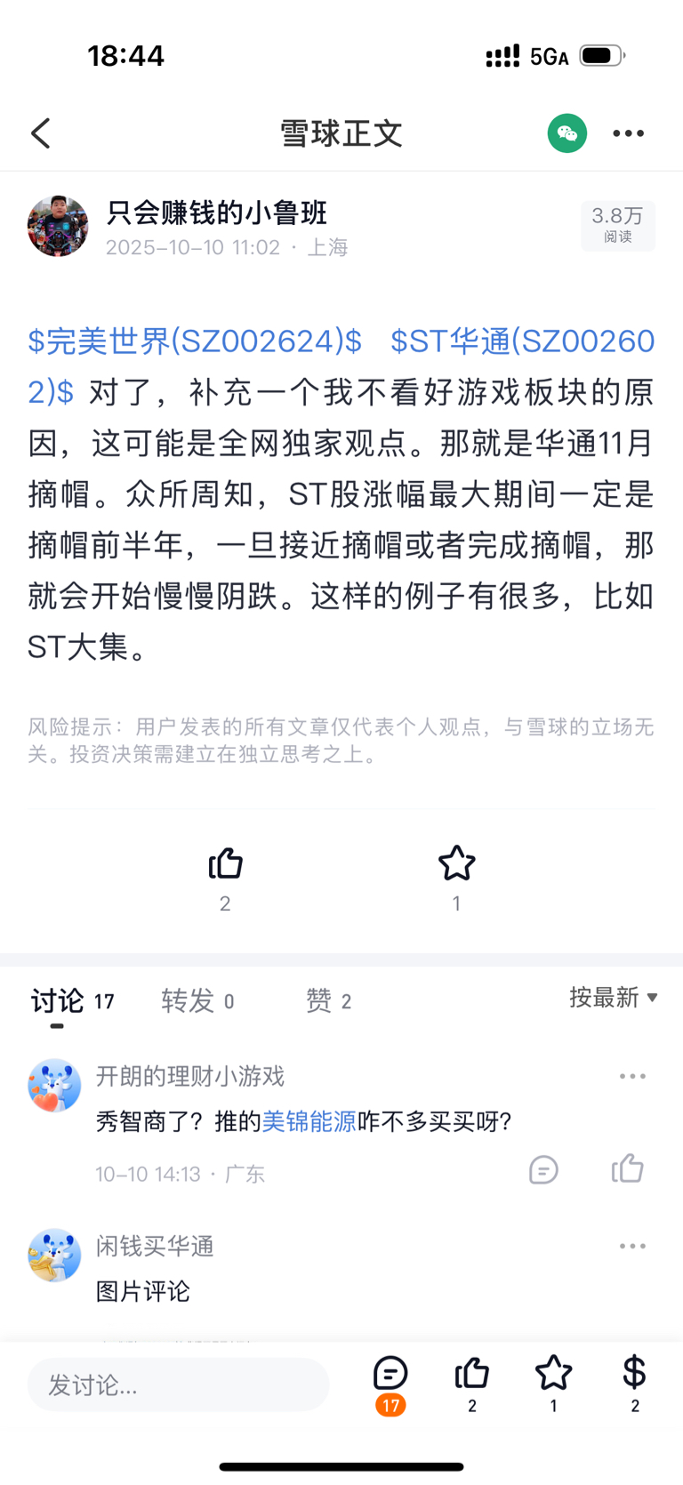 早在10月10号我就知道了华通11月摘帽,连我都知道的事情,你们觉得主力会不知道