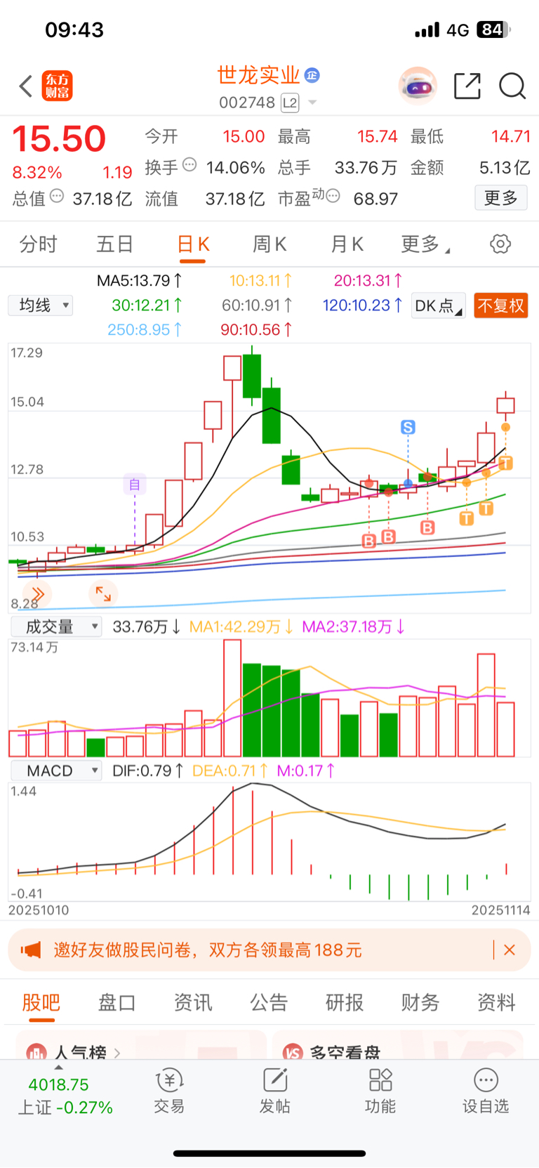 别和趋势作对,我止损清仓去了世龙,已经填补了这垃圾的亏损。