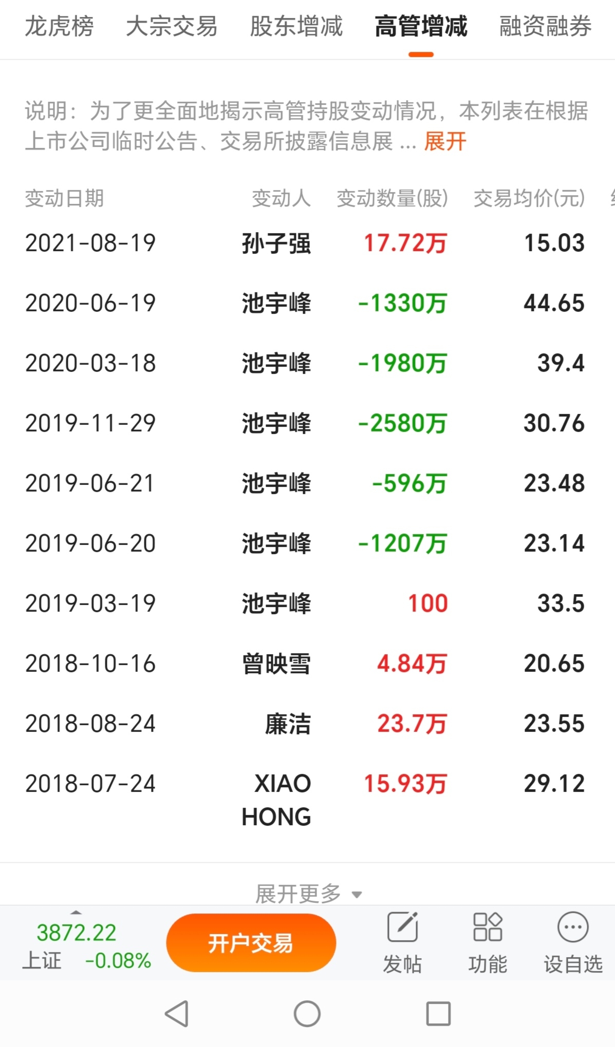 这是人干出来的事?上市十几年增持就一次100股,减持都是几千万股,每次都是价格涨