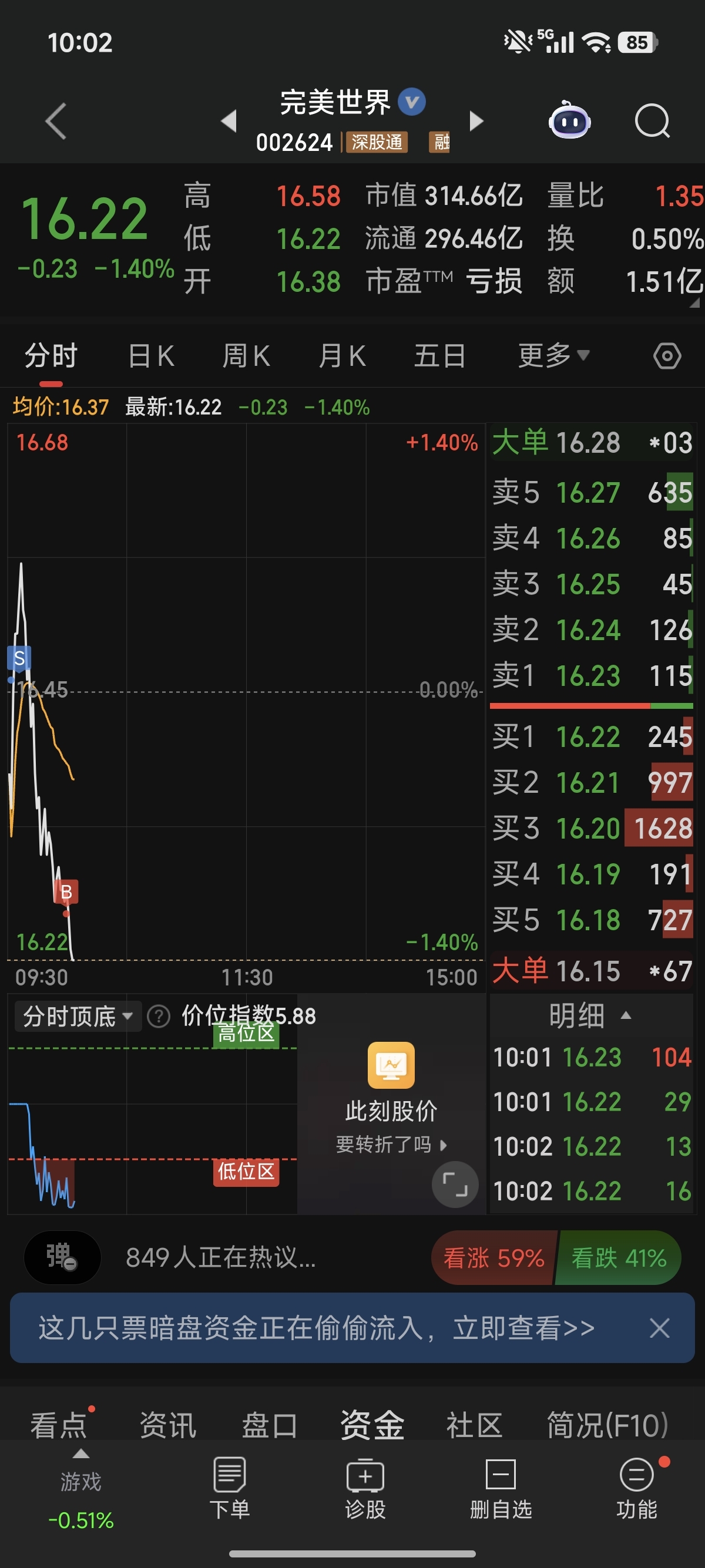$完美世界(SZ002624)$ 16.26支撑那么久,结果买廖就跌