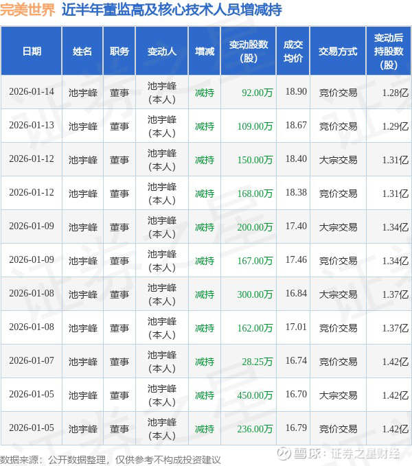 $完美世界(SZ002624)$ 算上今天没公布的,应该还有1000万,快要清干净了,只是好奇,为什么没走大宗,是机构不愿意接么