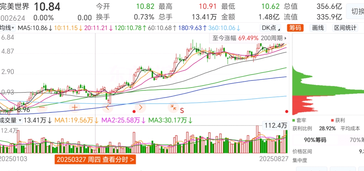 $完美世界(SZ002624)$ 上次连续两天横盘不动还是3月26,27日,后面一路上涨,接下来完美世界怎么走一目了然