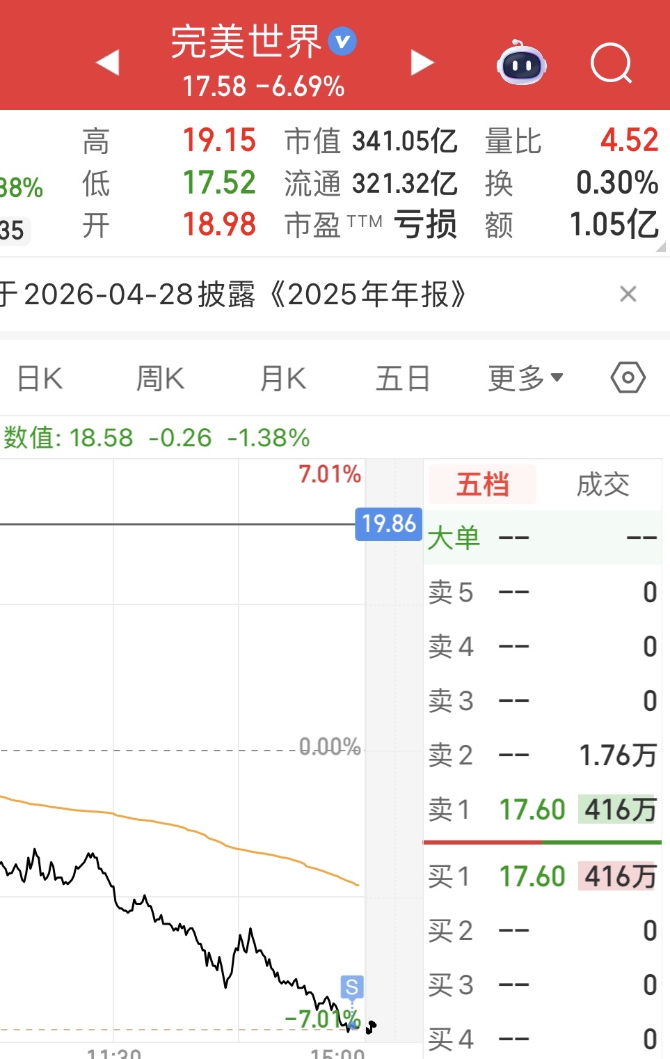$完美世界(SZ002624)$ 尾盘光速换了一半完美去巨人,博一手反弹