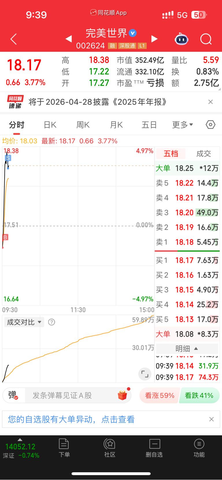 $完美世界(SZ002624)$ 今天水下一个买,水上3.5走,结束。