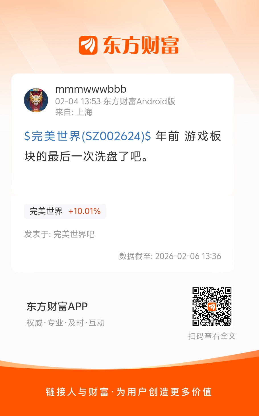 $完美世界(SZ002624)$ 年前 游戏板块的最后一次洗盘了吧。