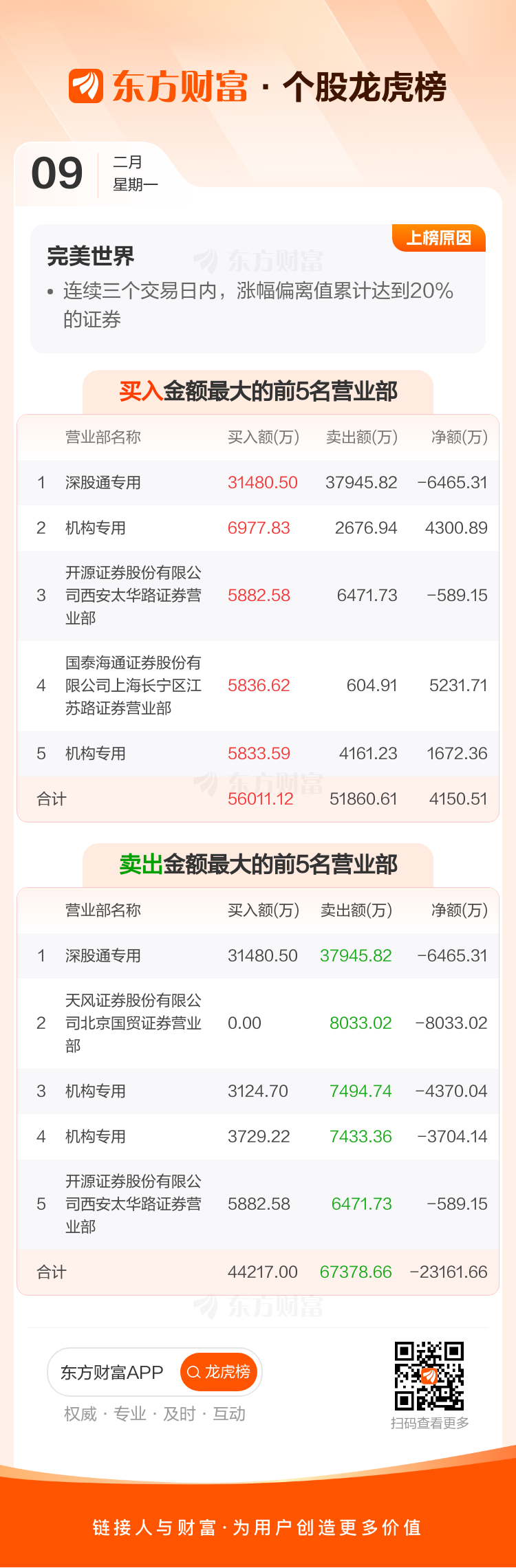 完美世界(002624)龙虎榜数据(02-09)
