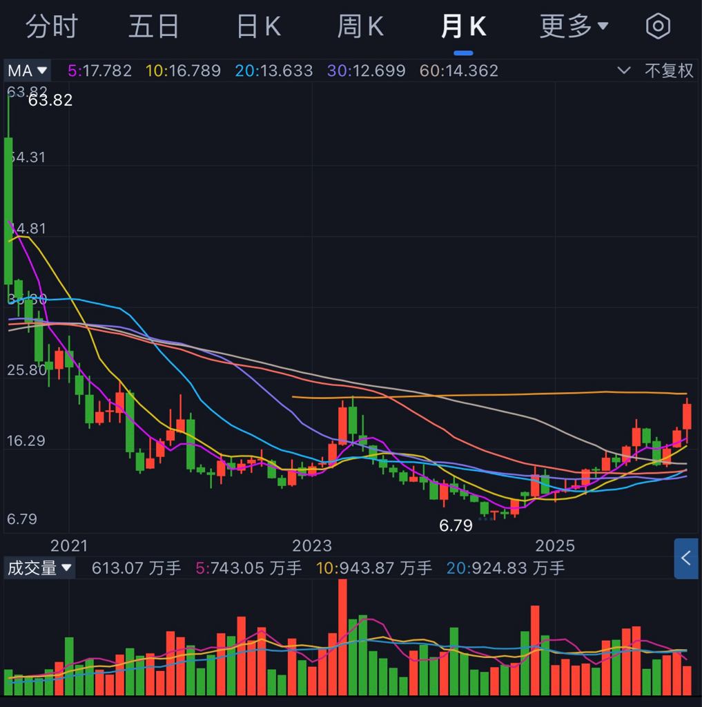看看,已经到了23年5月放巨量的强压力位,22-23元的压力太大了,必须持续放量