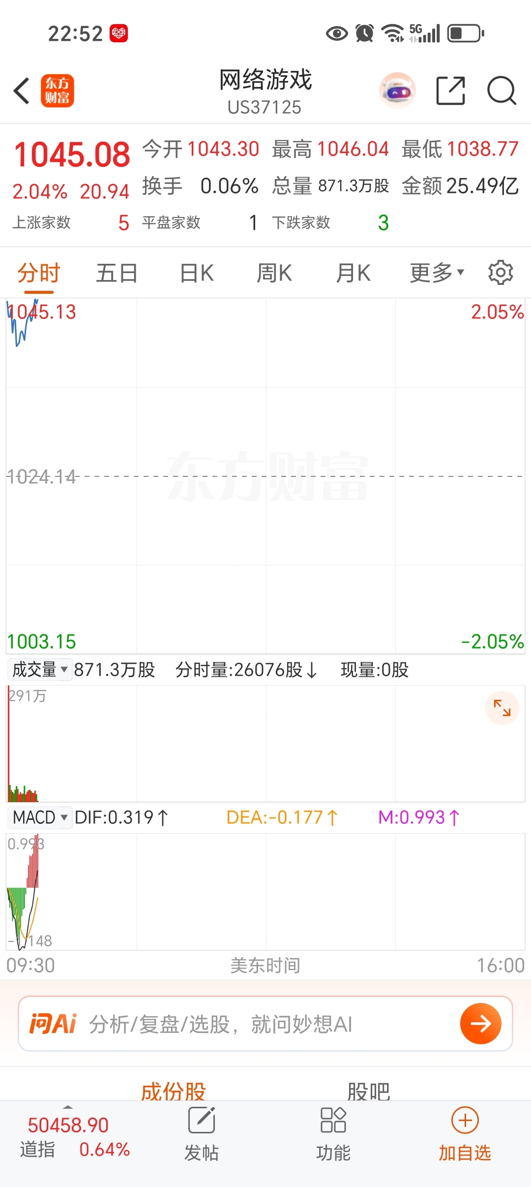 美股网络游戏概念上涨“可能大涨”明天开盘可择机介入