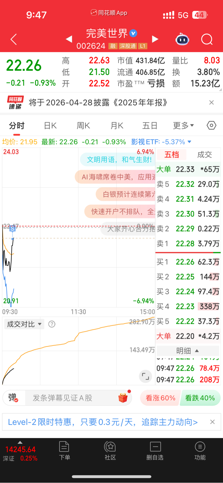 $完美世界(SZ002624)$ 昨天买的,小亏一个点先走了,看机会接回