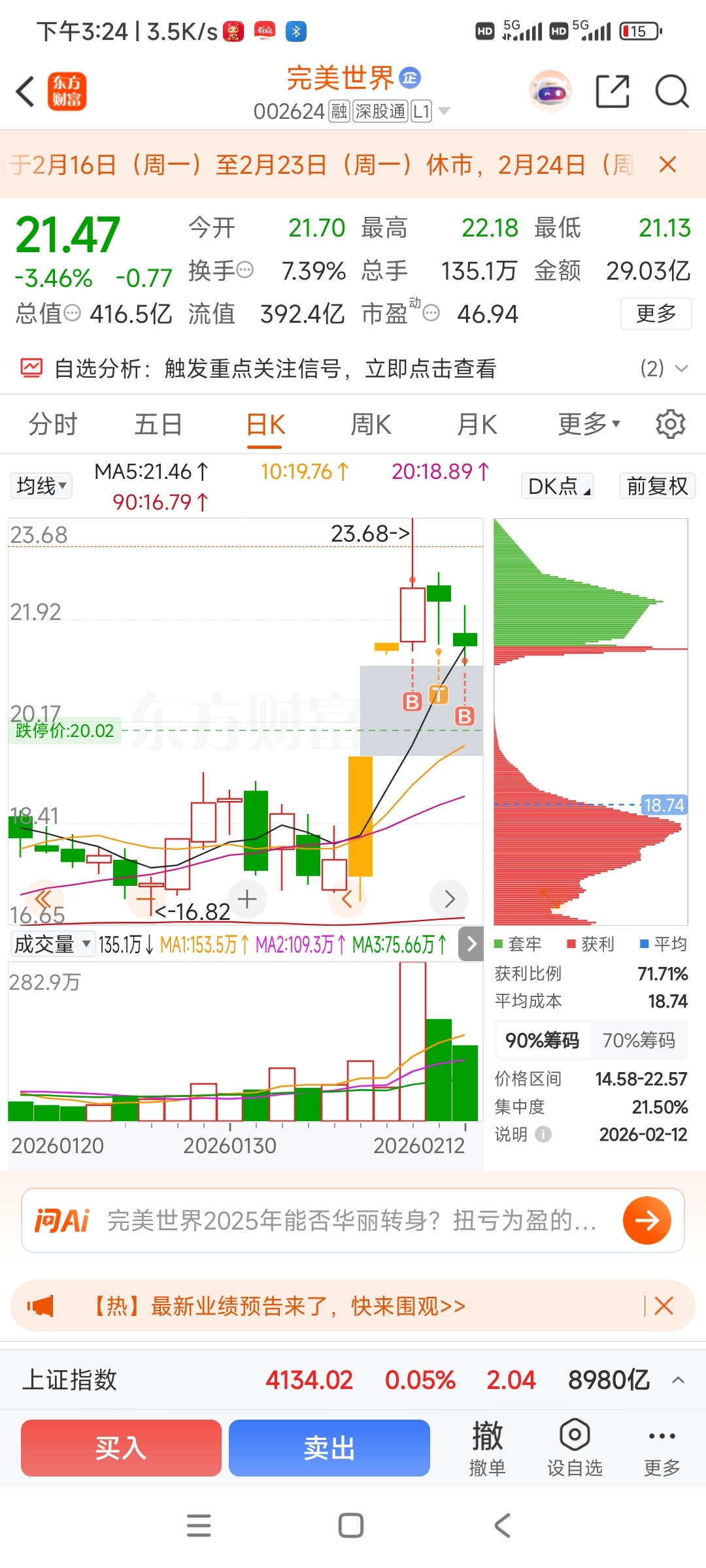 $完美世界(SZ002624)$ 听说你有毒,那我再见识见识,明天高开的几率大,如果不是那就弱爆了,撤。