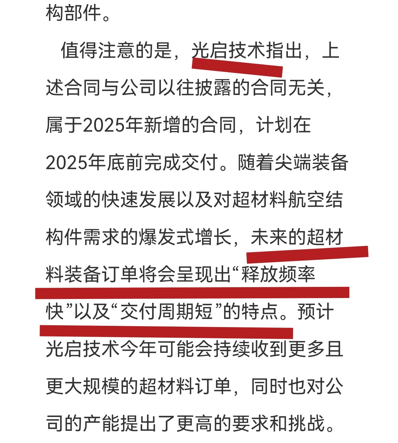光启订单将呈现“释放频率快,交付周期短”的特点。