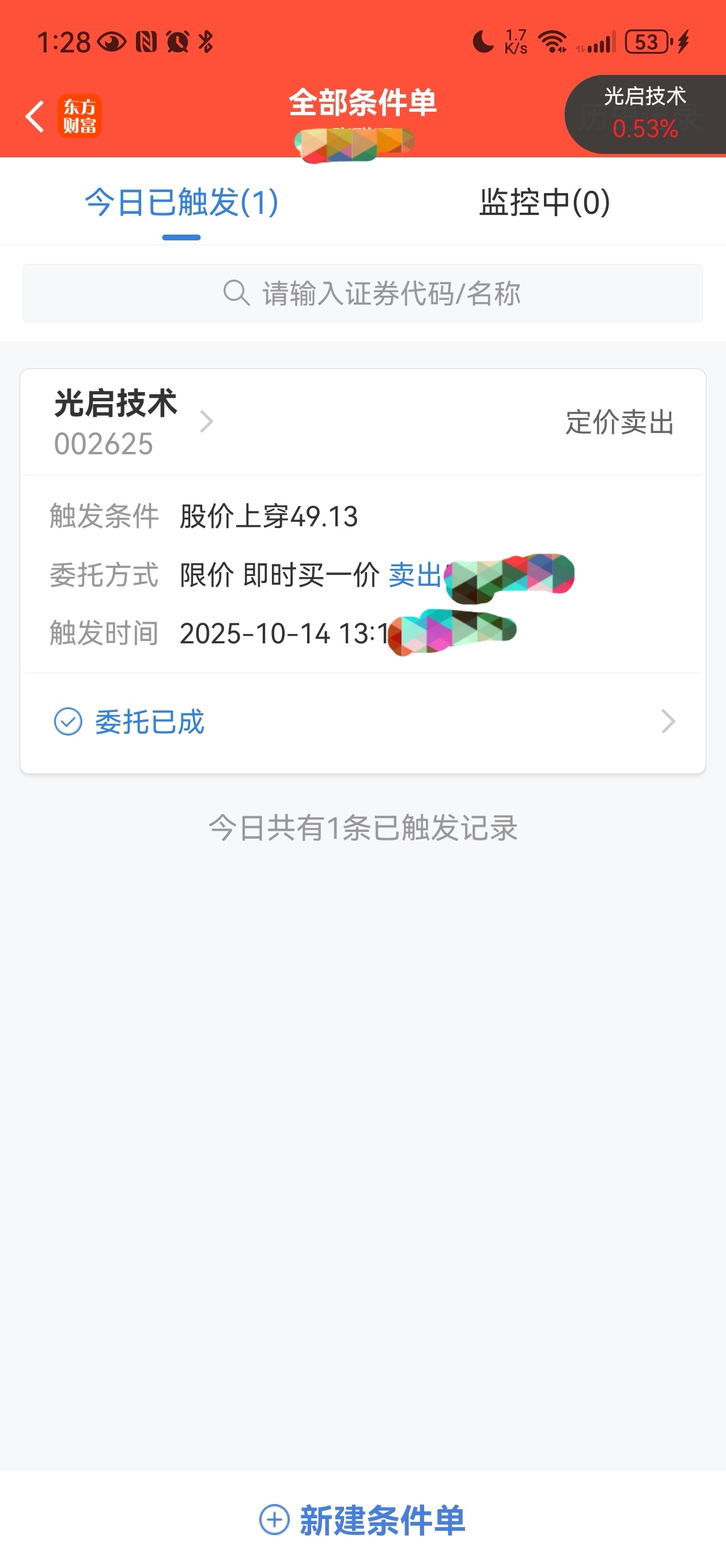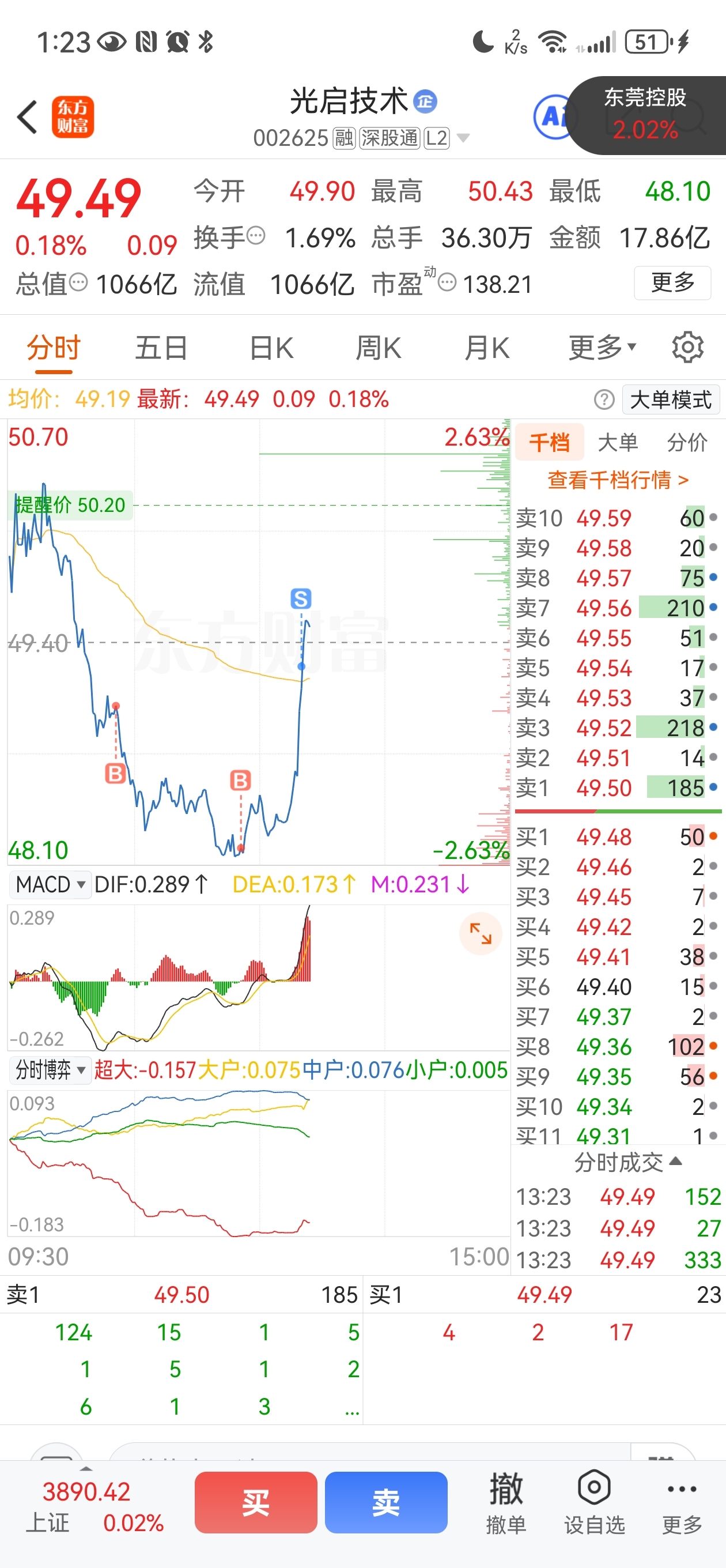 是我不自信了,想睡个午觉,条件单挂了49.13,可惜了